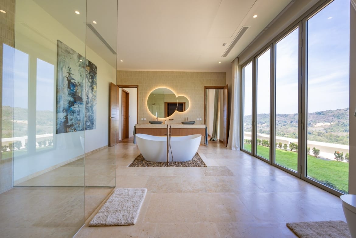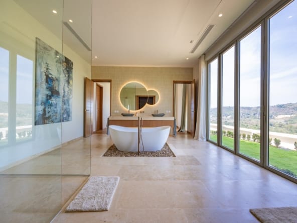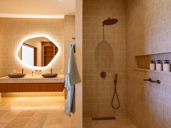 - All bedrooms feature en-suite bathrooms, with a bathtub in the main bathroom.
