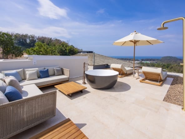 Nestled on a serene hillside in Layan, our luxurious pool villas offer panoramic views of lush green mountains or the breathtaking Bang Tao Bay and Andaman Sea. 🌅 Ideal for those seeking a high-end tropical living experience in a tranquil setting.