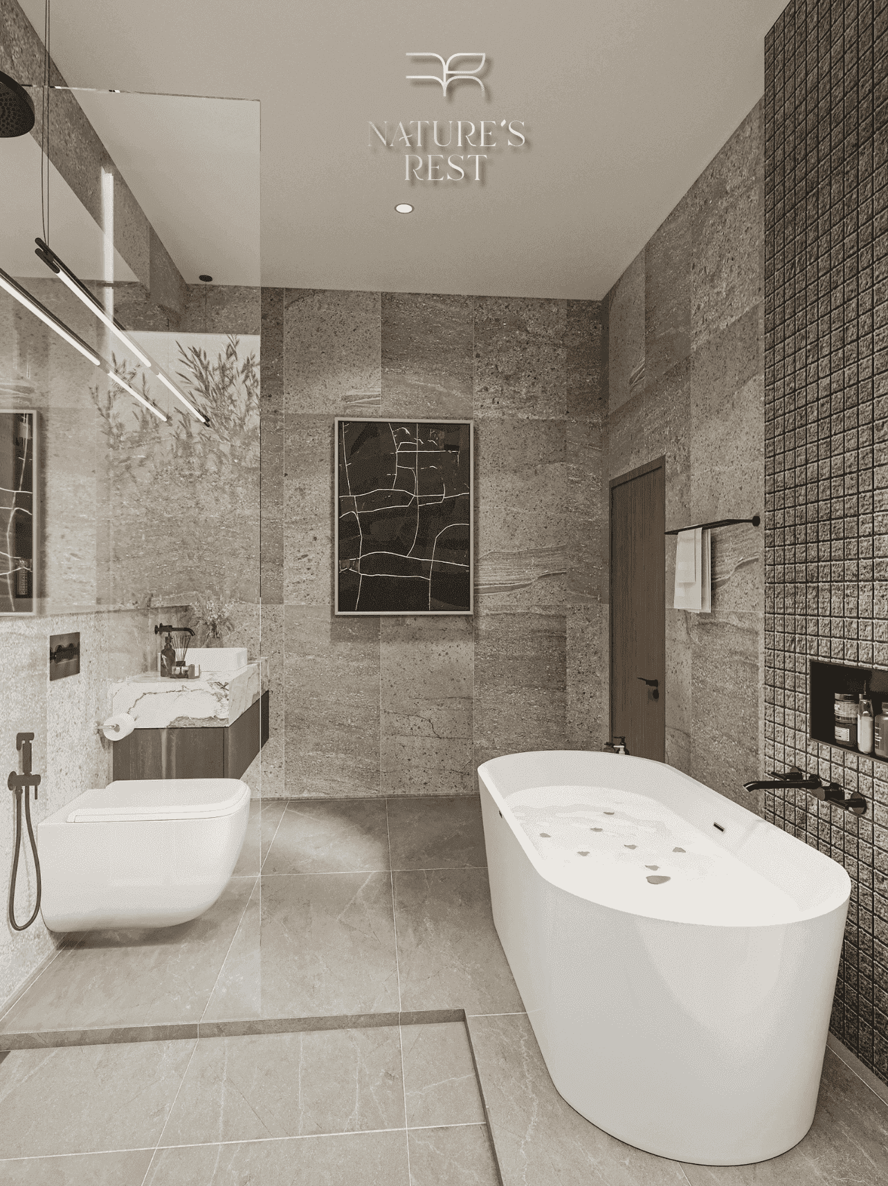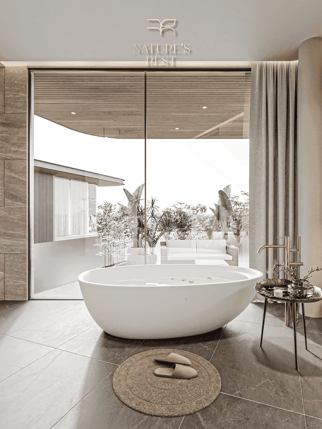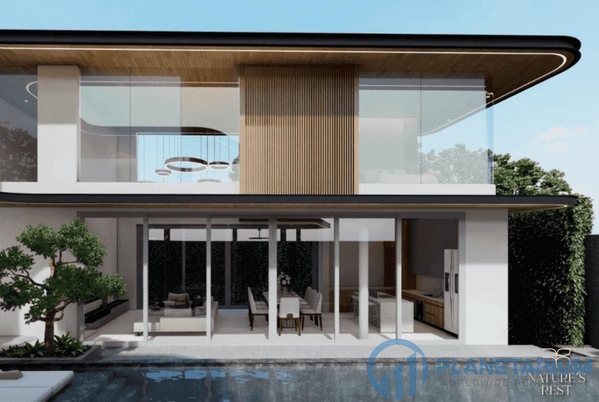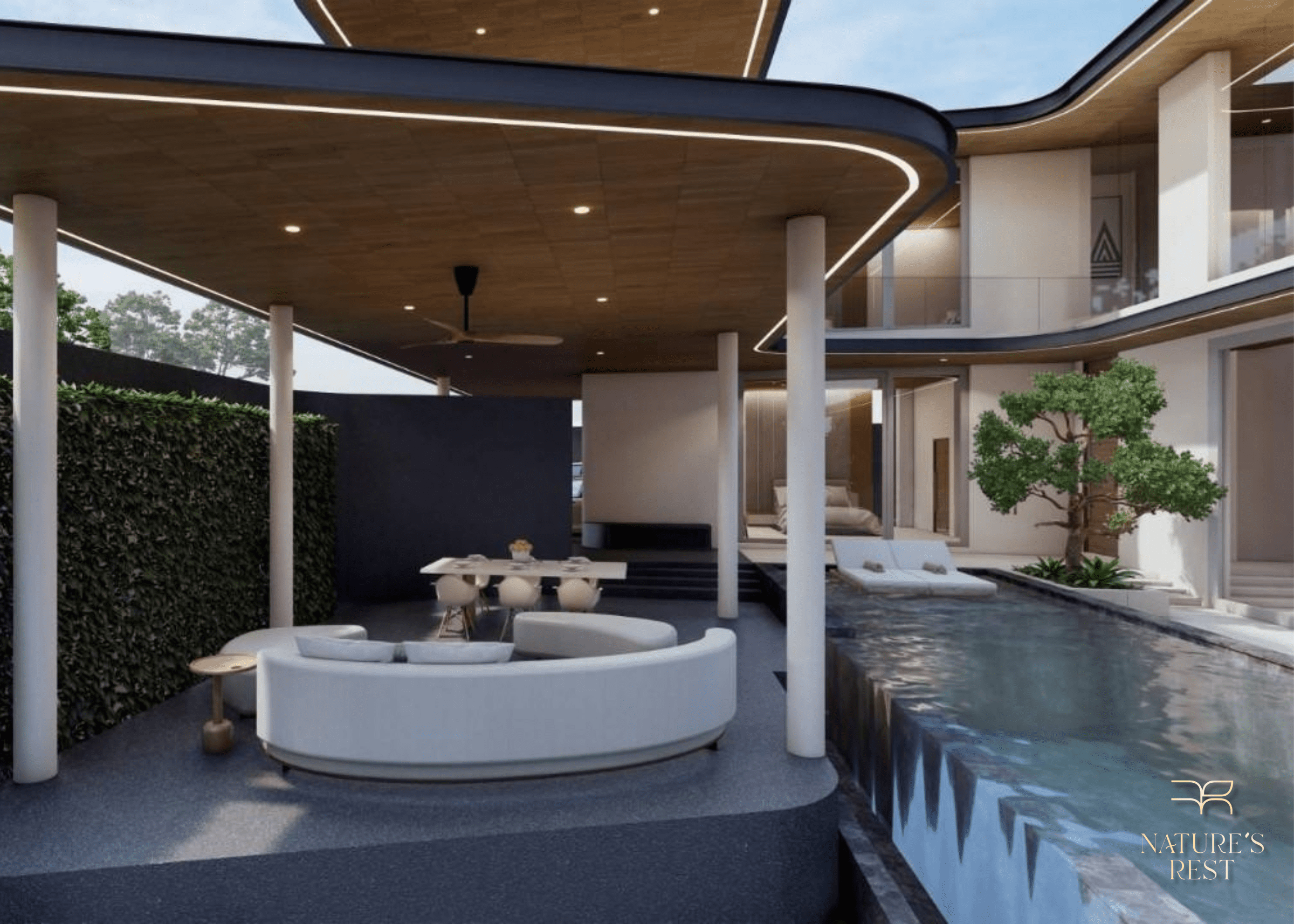 Villas that blend natural beauty and modern amenities. Providing a unique experience of nature, comfort, and luxury. It is the perfect location for relaxation, and its proximity to all of Phuket’s attractions makes it an ideal place to stay. Villas are designed to capture the charm of nature and feature unique materials that make them look exquisite. The interiors are decorated with cream and gold tones, giving them a touch of luxury. The villas are surrounded by green spaces and beautiful mountains, creating a peaceful and relaxing atmosphere, perfect for getting away from the busy city life. They have modern designs with functional living spaces that meet all your needs. The villas are conveniently located next to the main road, making them easily accessible for those looking for vacation homes or long-term