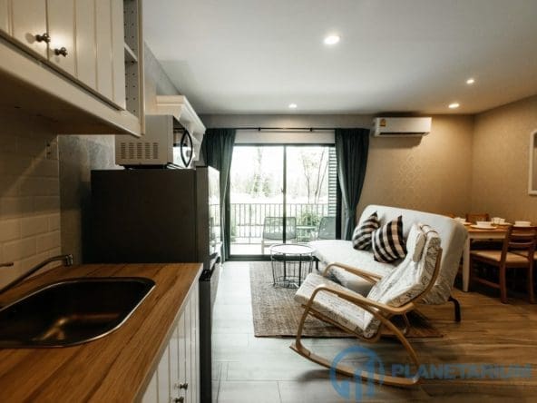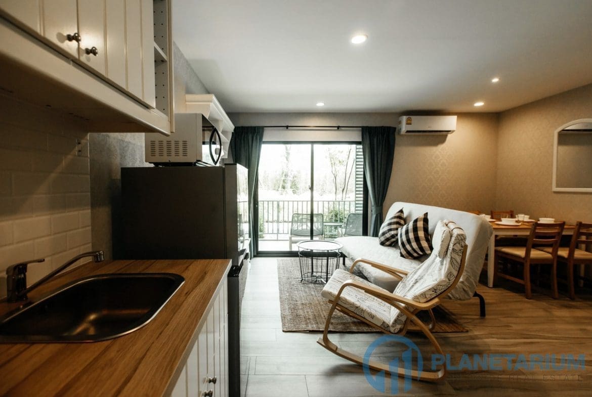 Unit is available 1-bedroom layouts with sizes 46 sqm. All apartments offer kitchens, a separate bedroom, living/dining area, and private balcony.