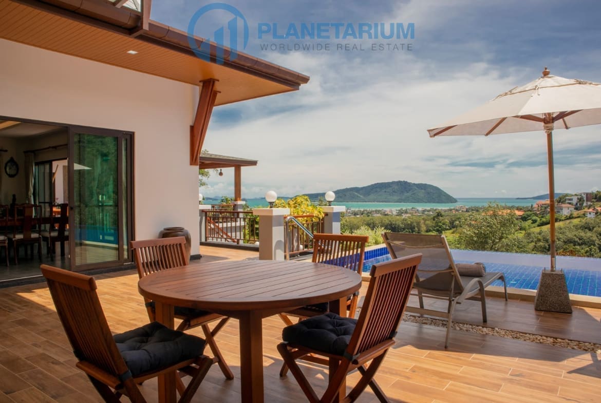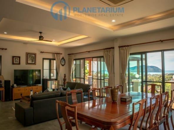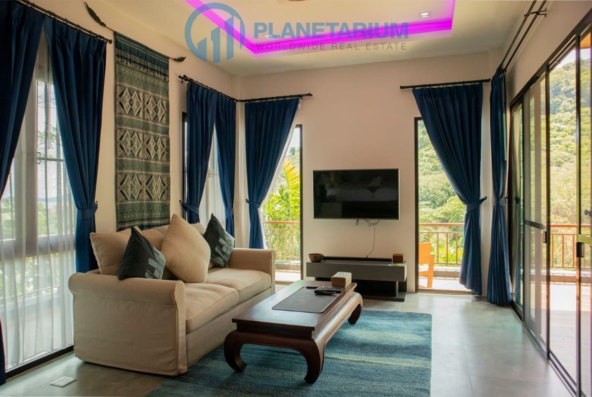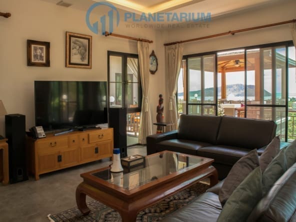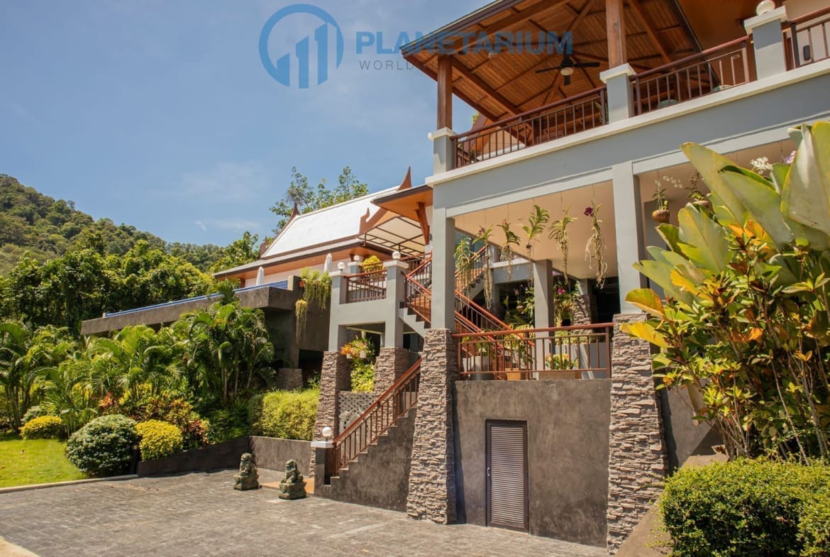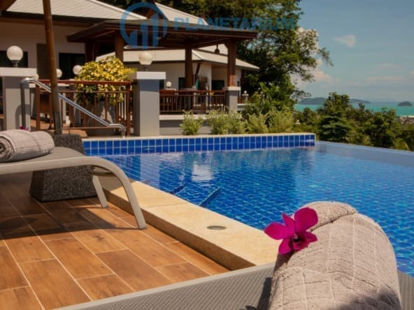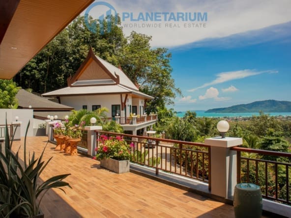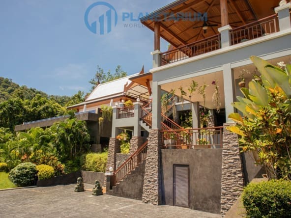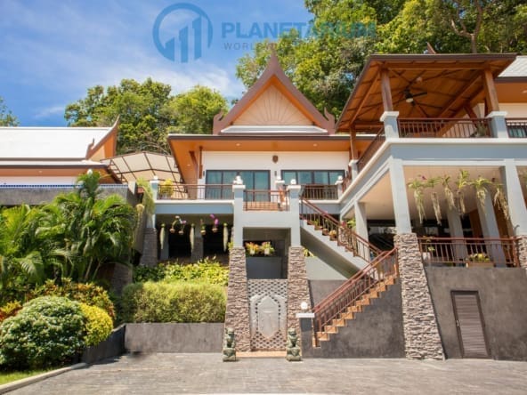 The Villa is in Rawai on a hillside overlooking the sea with expansive views of offshore islands. The lot is over 7,000 square meters surrounded by forest in a quiet area with no adjacent neighbors.