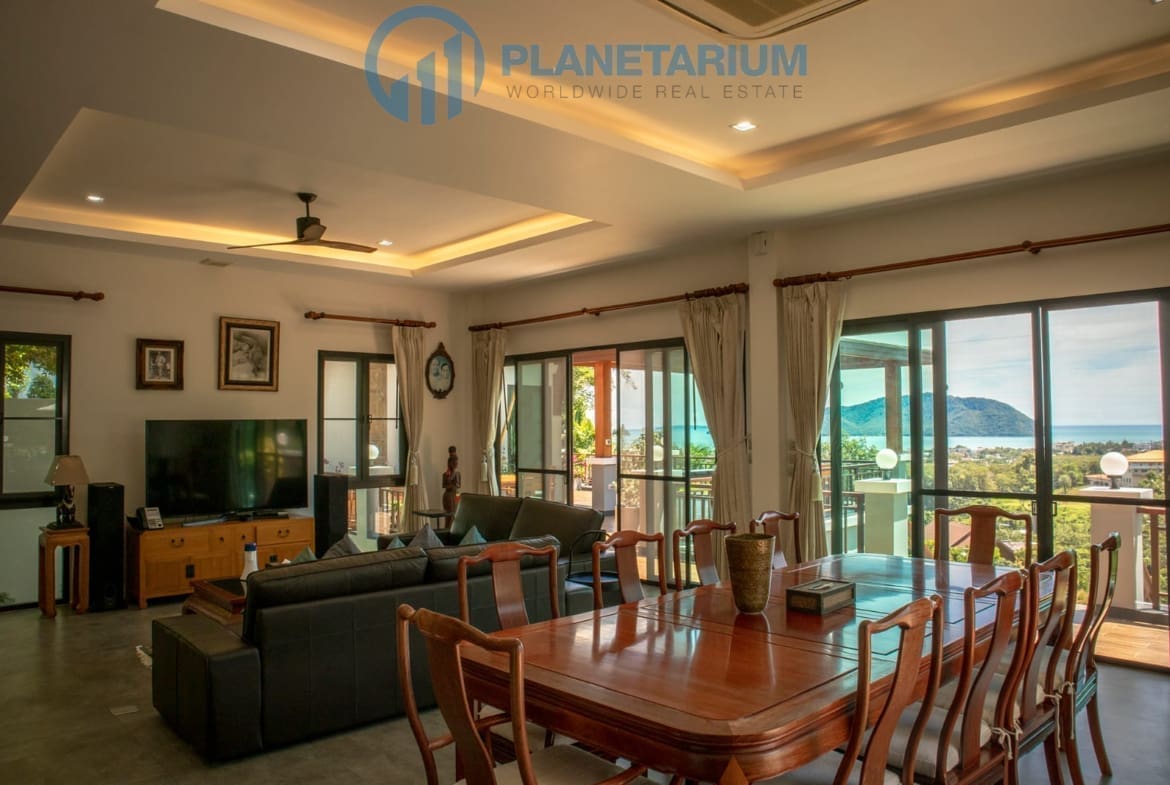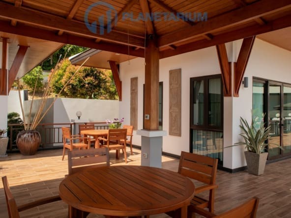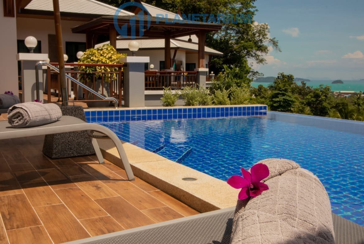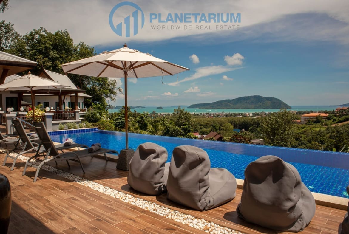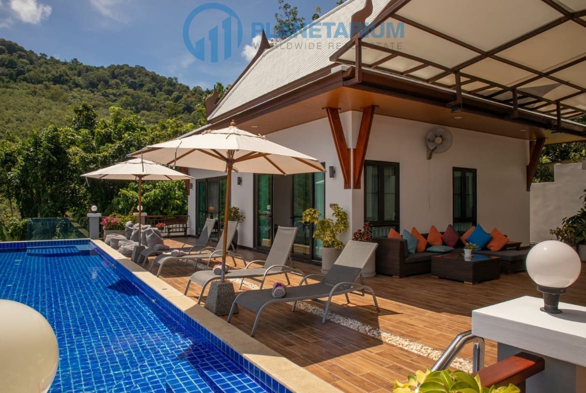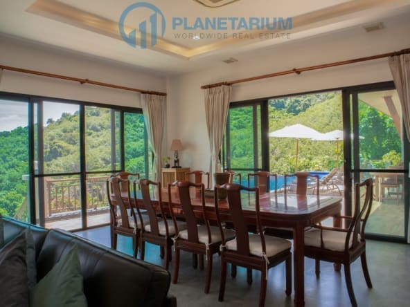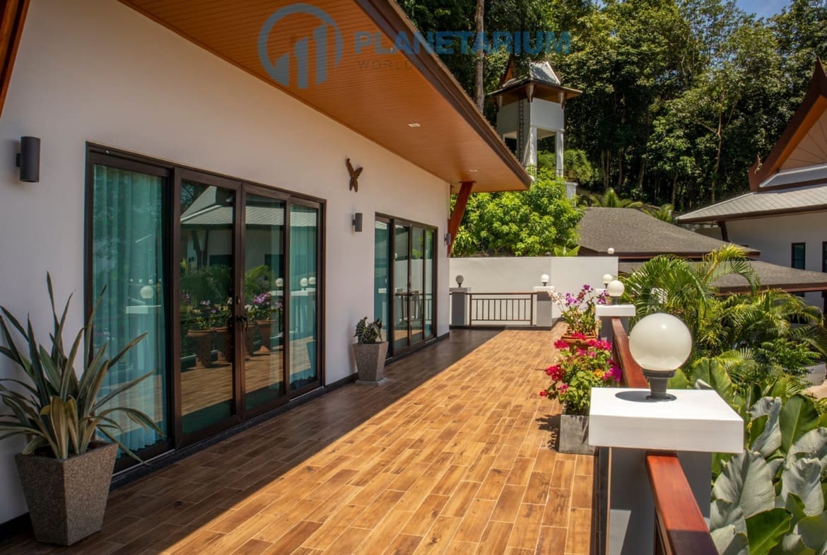 The Villa is in Rawai on a hillside overlooking the sea with expansive views of offshore islands. The lot is over 7,000 square meters surrounded by forest in a quiet area with no adjacent neighbors.