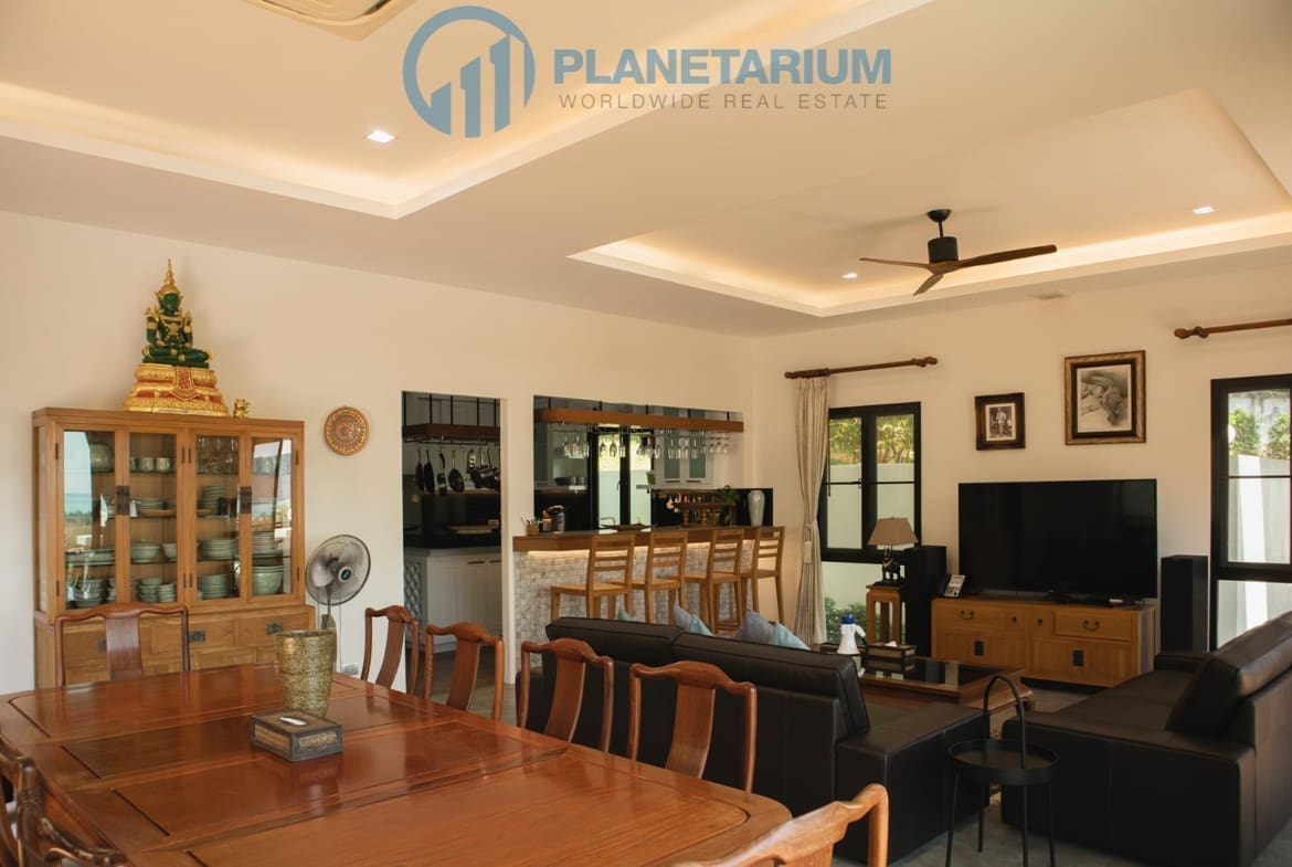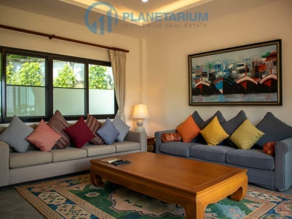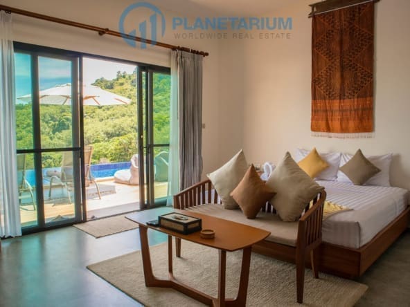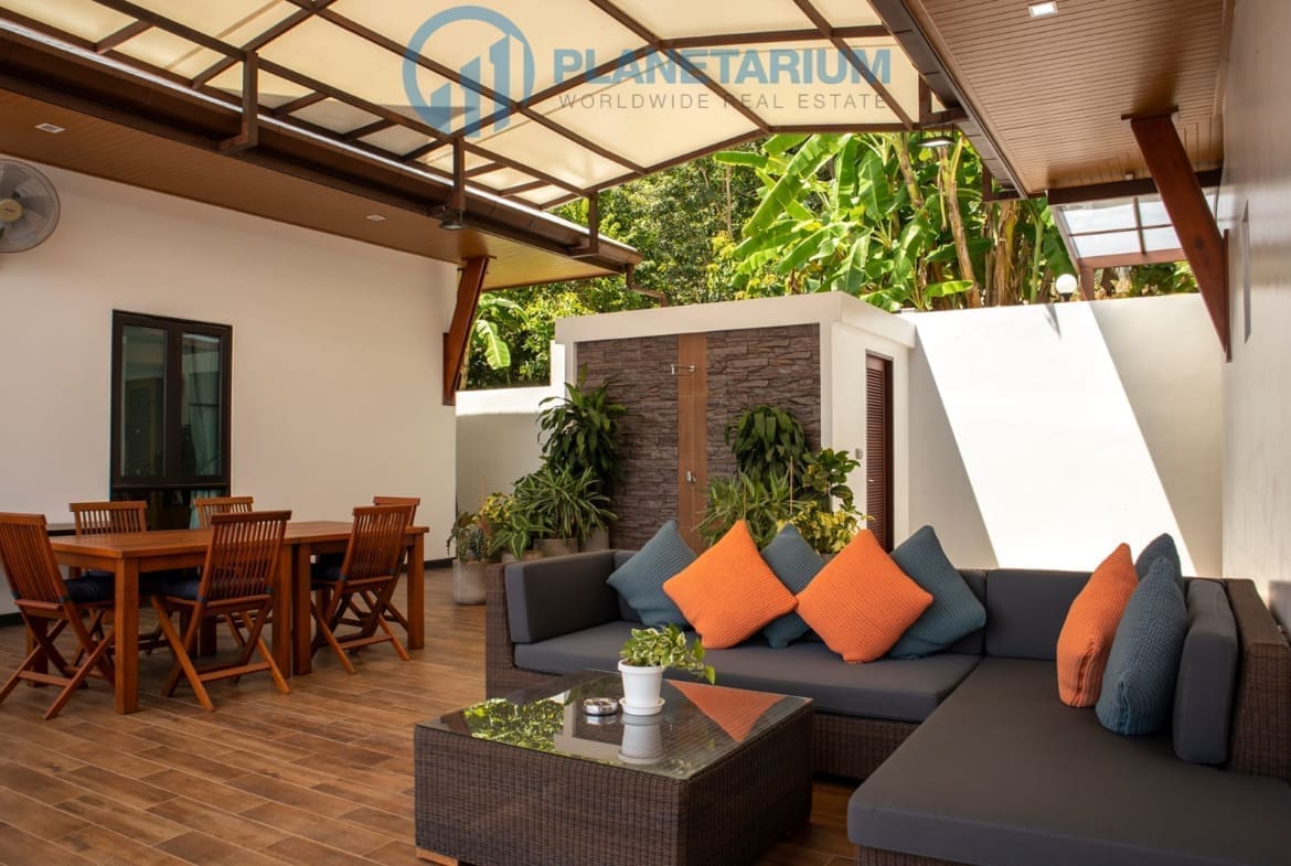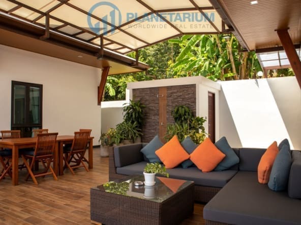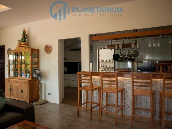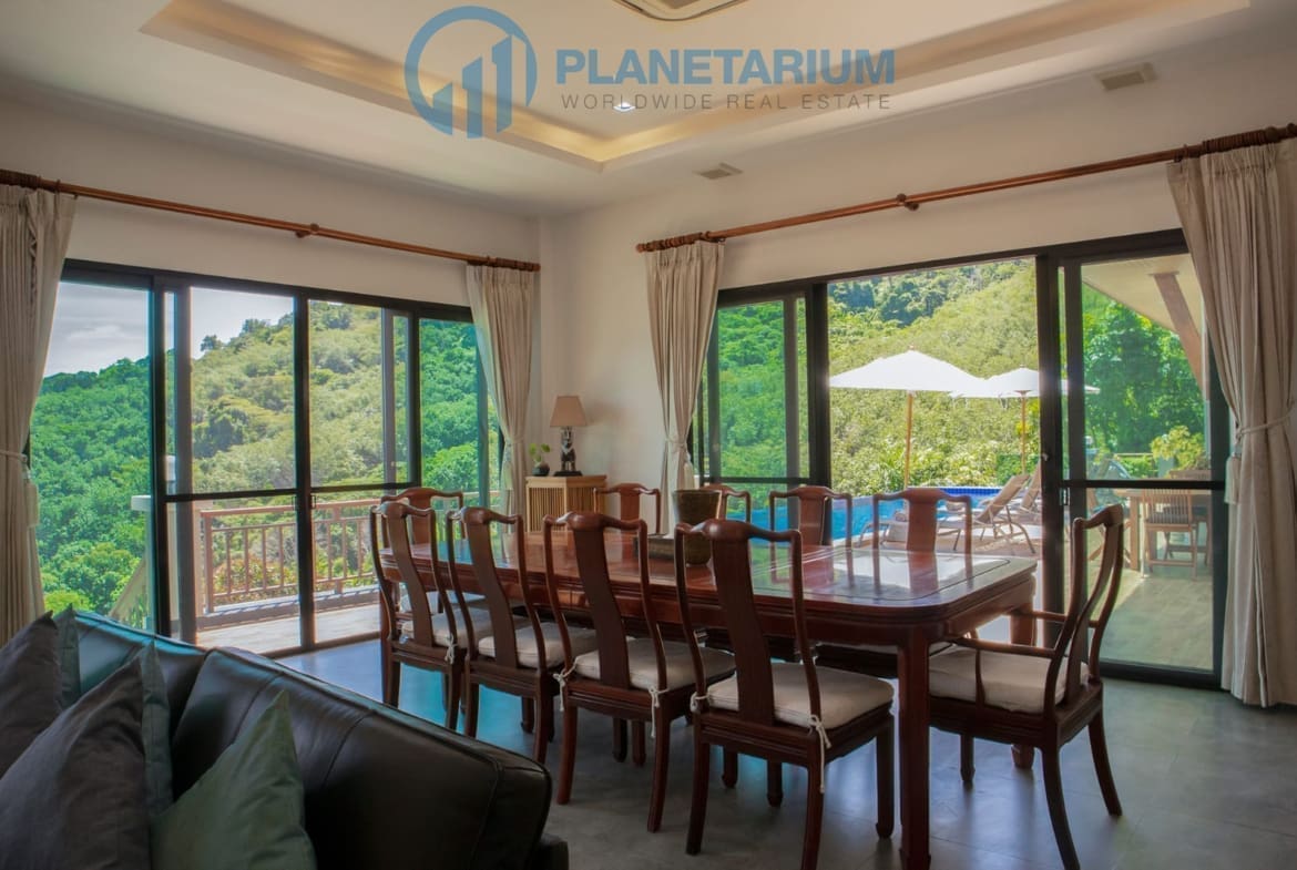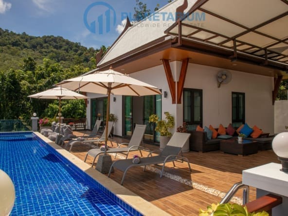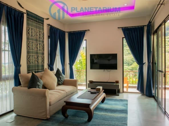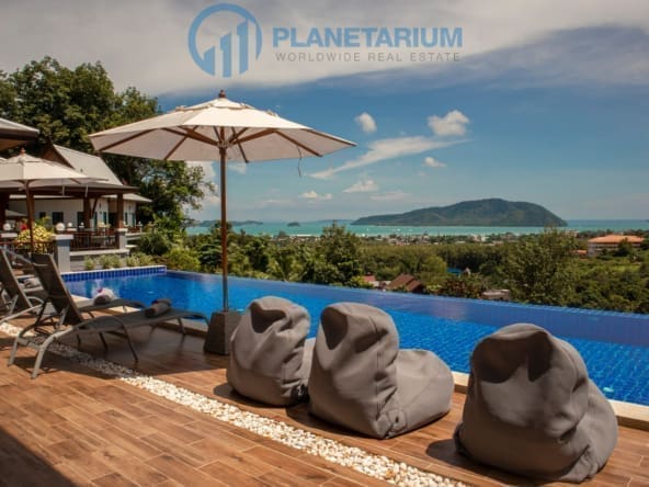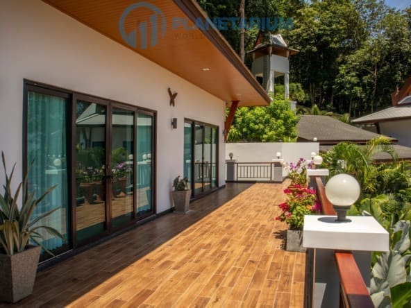 The Villa is in Rawai on a hillside overlooking the sea with expansive views of offshore islands. The lot is over 7,000 square meters surrounded by forest in a quiet area with no adjacent neighbors.