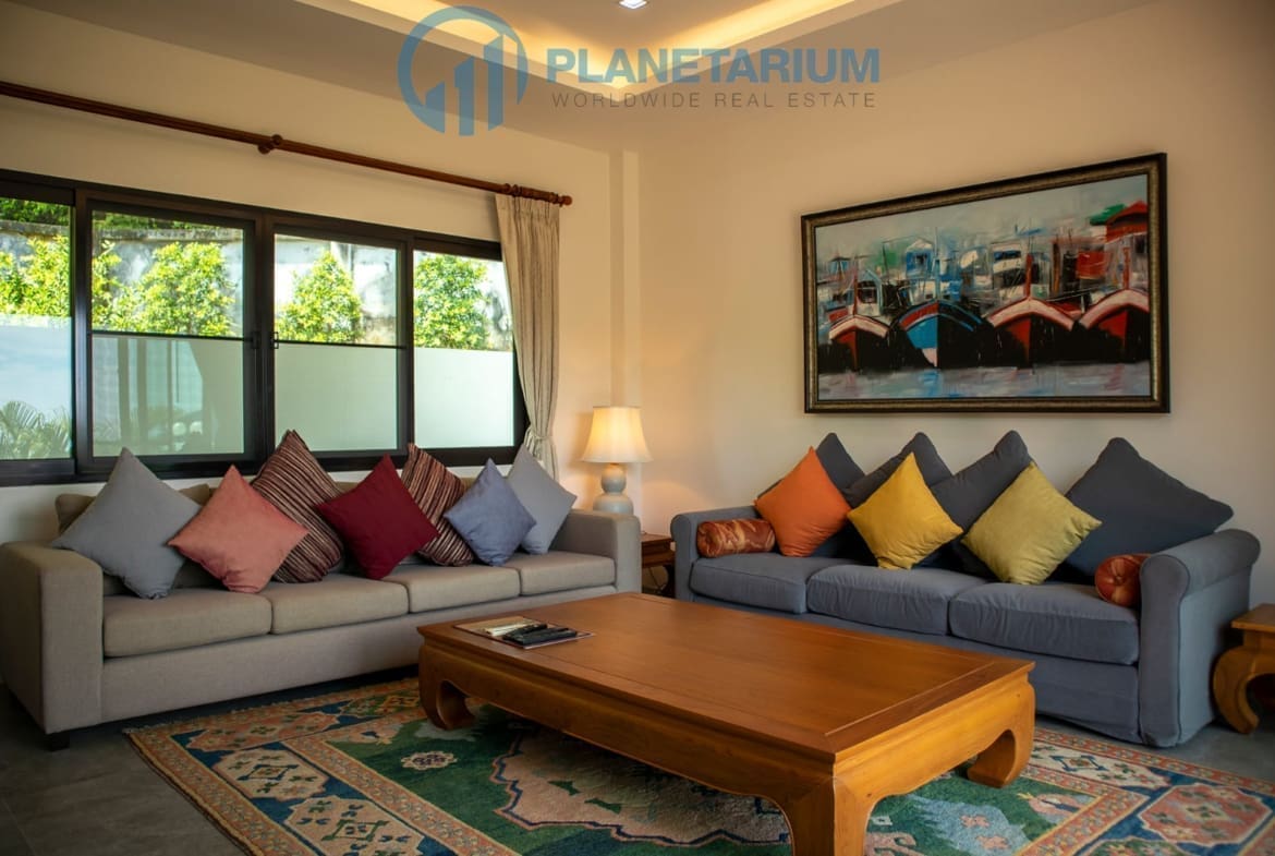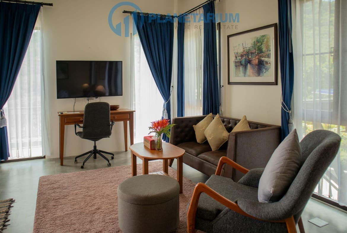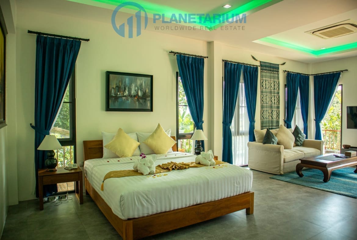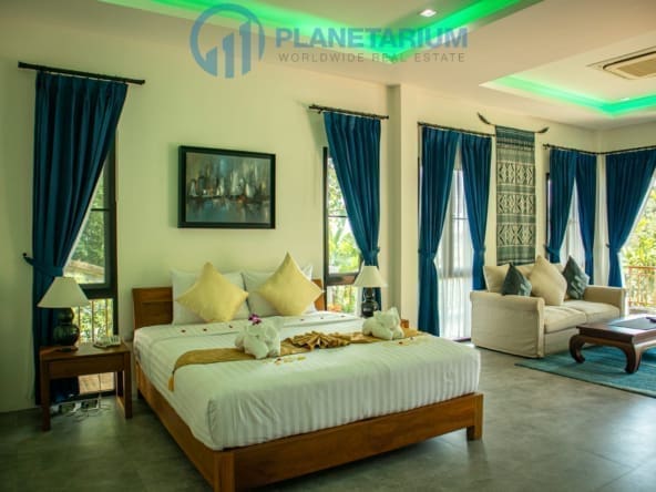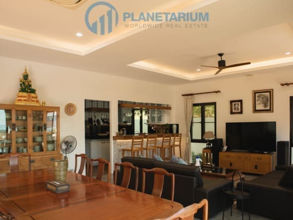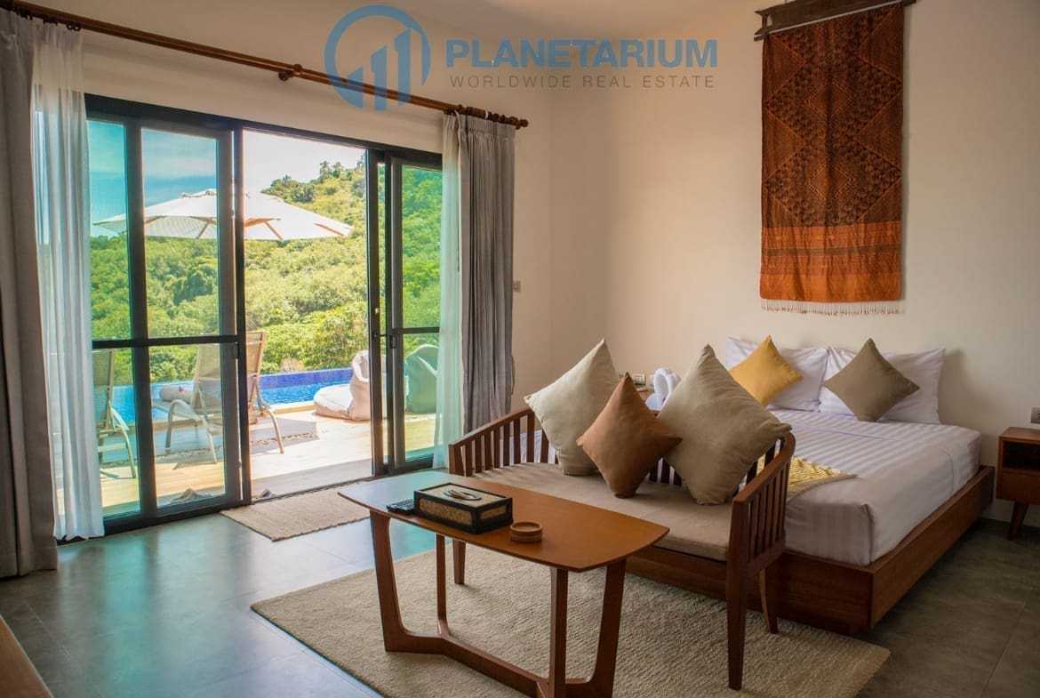 The Villa is in Rawai on a hillside overlooking the sea with expansive views of offshore islands. The lot is over 7,000 square meters surrounded by forest in a quiet area with no adjacent neighbors.