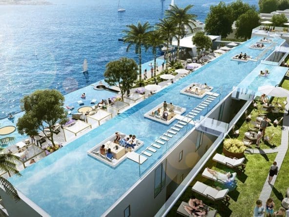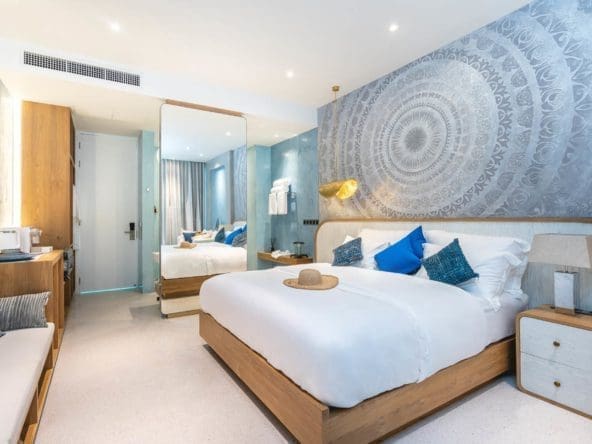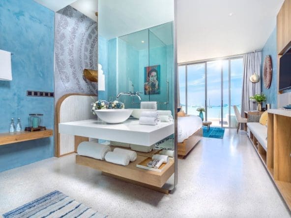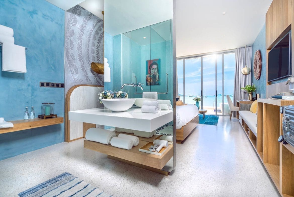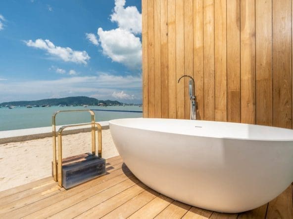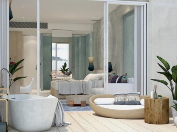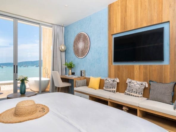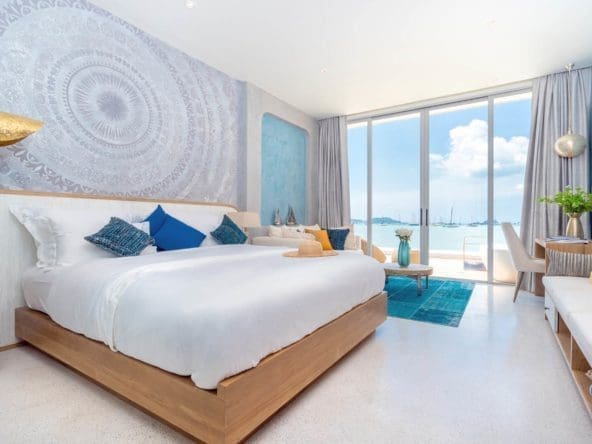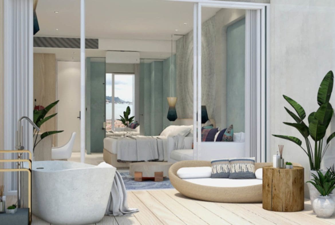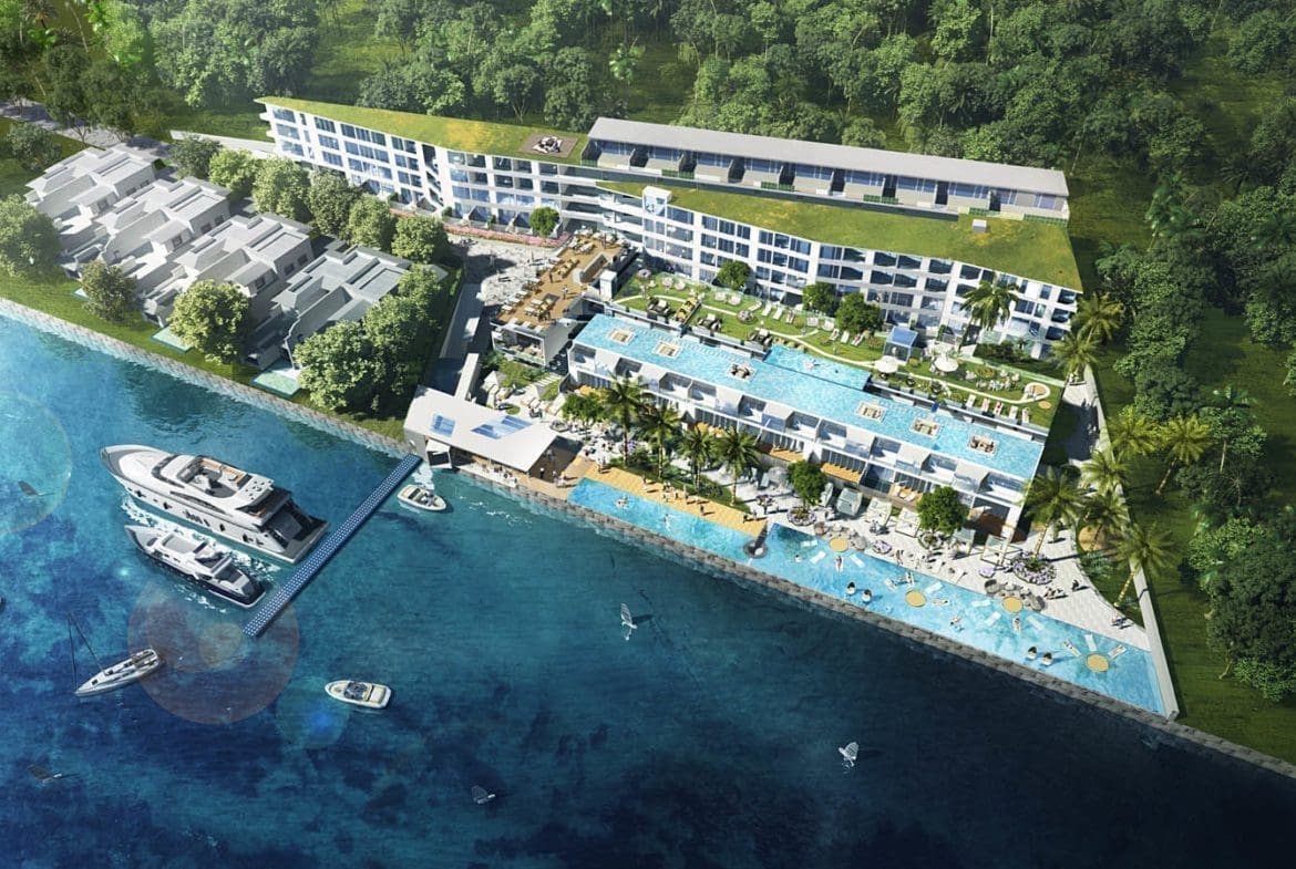 Just imagine, you walk out of your apartment overlooking the Andaman Sea: sea air, sunshine and birds singing. Go out to the pier, and there’s a private boat waiting to take you to the island with azure waters and white sand. Just five minutes and you’re there.