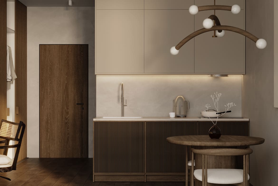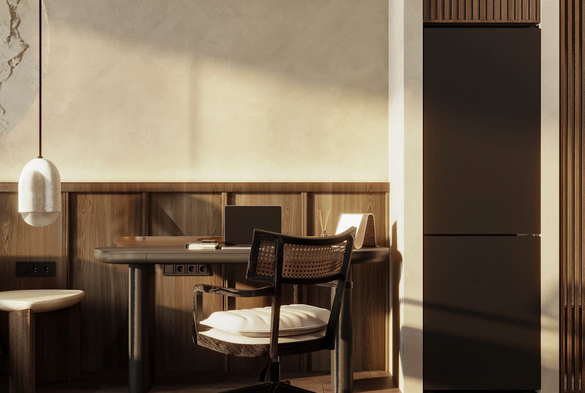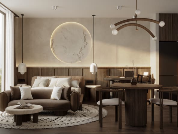 В дизайне переплетаются замысловатые детали с природными элементами, такими как дерево, камень, текстиль и многое другое. Это сочетание создает эстетику, превосходящую обыденность, предоставляя жильцам захватывающее дух жилое пространство, соответствующее принципам разумной жизни.