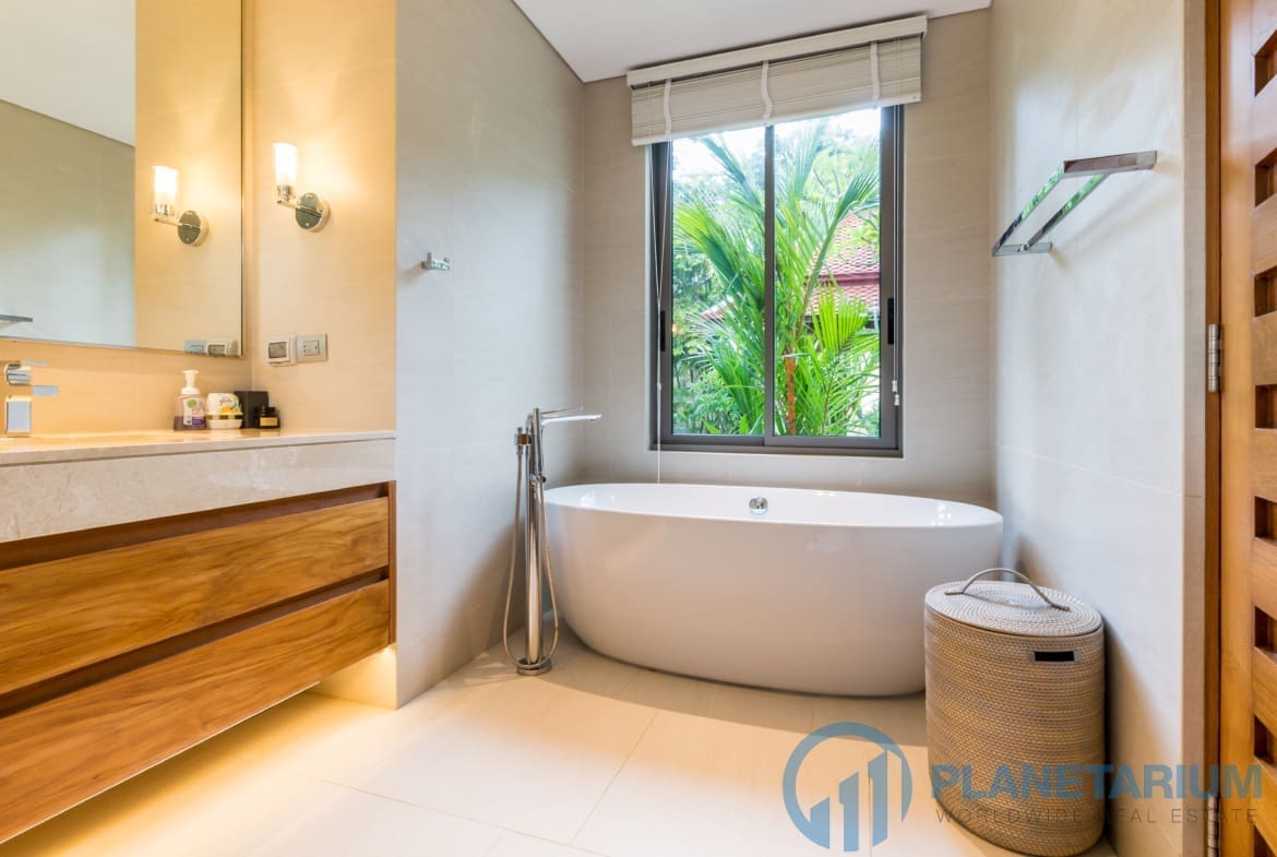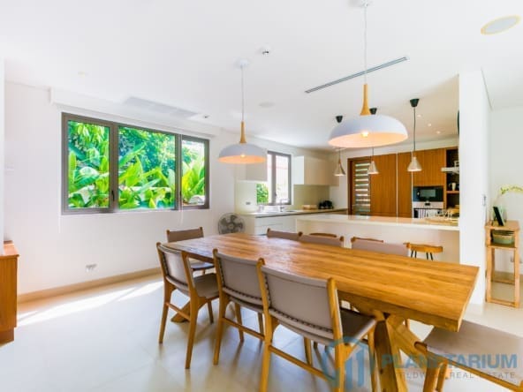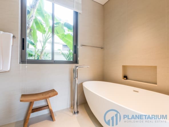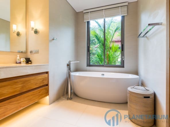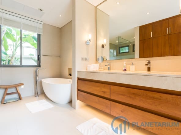 Погрузитесь в царство непревзойденной элегантности с нашей виллой в стиле Бали. Погрузитесь в успокаивающую ауру дома, который окружен центральным бассейном и может похвастаться джакузи на открытом воздухе.