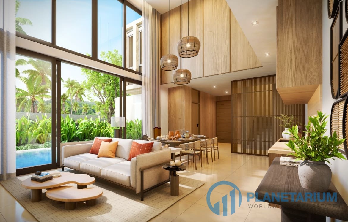 Дизайн дома охватывает 3 этажа, с глубокой планировкой, которая подчеркивает сад и зону бассейна сбоку от дома. Каждая функция дома спроектирована так, чтобы быть видимой, обеспечивая расслабляющую атмосферу, похожую на Pool Villa.