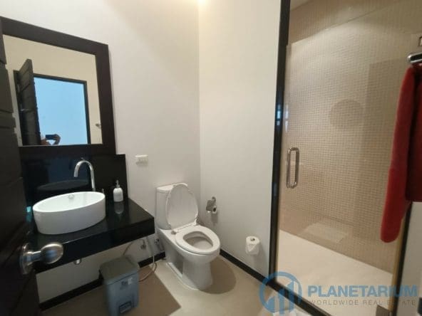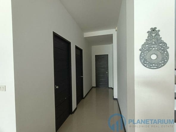Он был разработан, чтобы предложить современный комфорт и хорошо продуманную отделку вместе с максимальной возможностью использования жилой площади. Две спальни расположены на верхнем этаже, каждая с собственной ванной комнатой и большим крытым балконом с видом на сад и склон холма. Третья спальня находится на нижнем этаже.