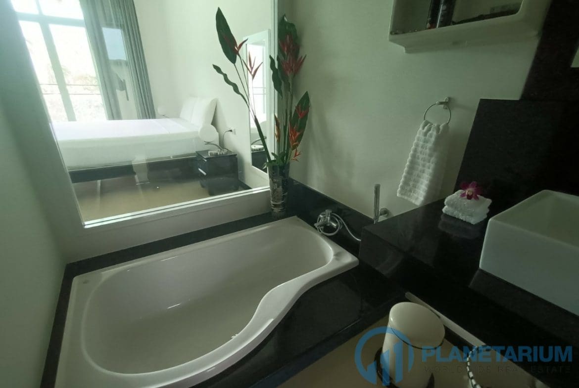 Этот хорошо оборудованный торцевой блок представляет собой просторный двухуровневый кондоминиум с 4 спальнями и 15-метровым частным бассейном и тропическим садом с высокими стенами.