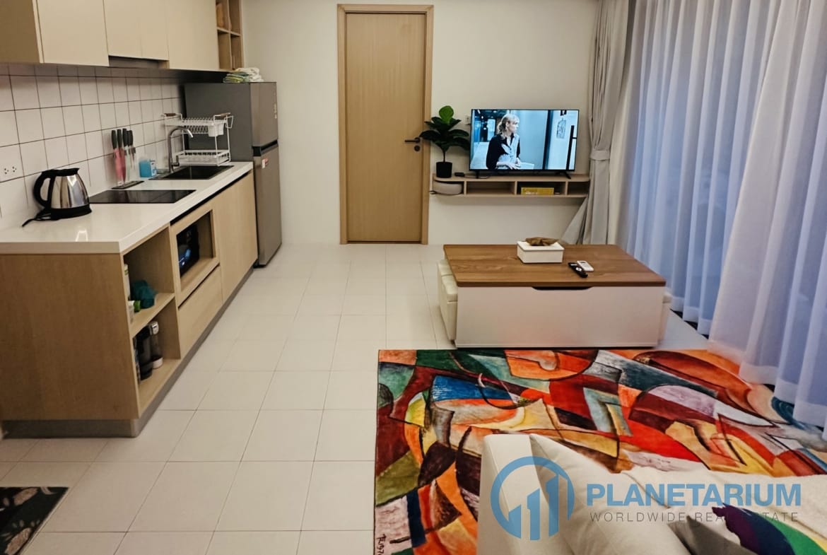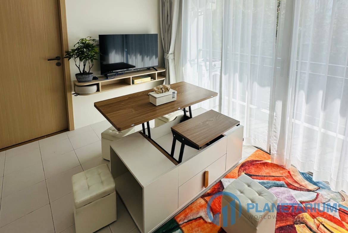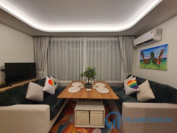 Расположен на <b>верхнем 4-м этаже</b> жилого комплекса Fantasea condo Kamala, эта уютная и полностью меблированная квартира предлагает спокойный <b>вид на горы</b> и все удобства для проживания.