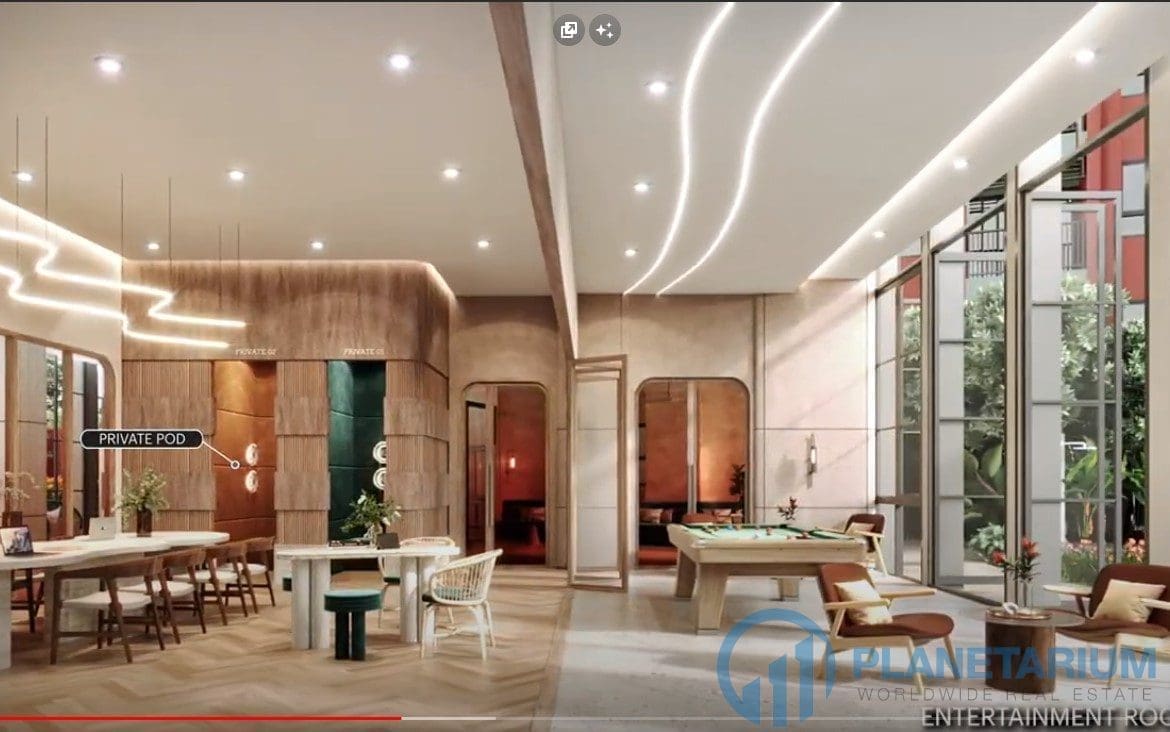 Побалуйте себя отдыхом и продуктивностью благодаря развлекательному залу, пространству для совместной работы и частным капсулам, предназначенным как для работы, так и для развлечений. Кроме того, вы можете насладиться площадкой для принятия солнечных ванн и задним двором Sansiri, идеально подходящим для отдыха и общения.