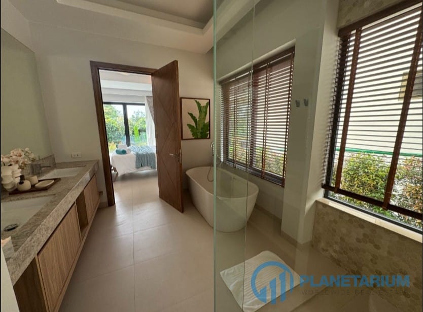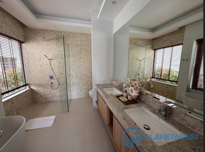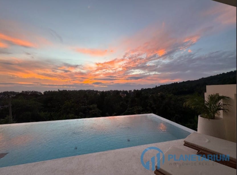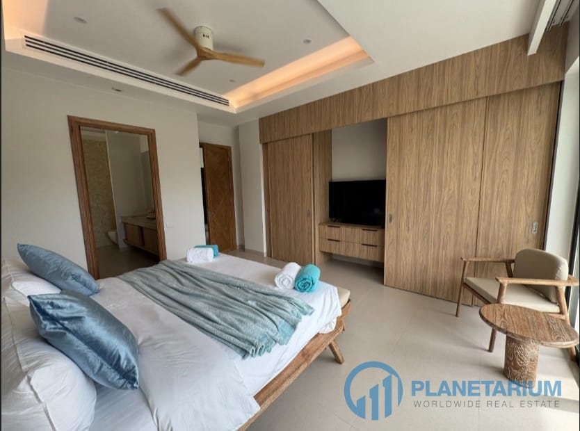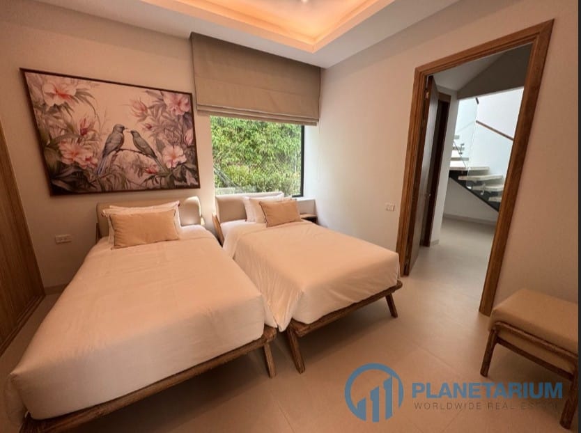 Расположенная в пределах охраняемого, хорошо управляемого закрытого поселка, эта исключительная двухуровневая вилла сочетает в себе современную элегантность, функциональный дизайн и безмятежную тропическую жизнь. Расположена на 2 252 кв.м земли с 320 кв.м жилой площади , всего в 800 метрах от пляжа Найтон, предлагая уединение, удобство и панорамный вид на море 🌊.