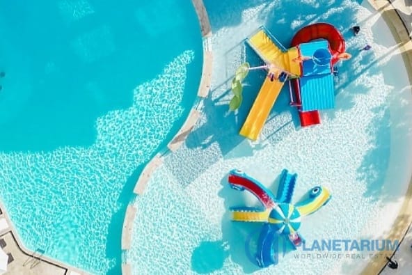 🏝️ 516 номеров и люксов</b> построен вокруг впечатляющего <b>Waterworld</b> с лагунами-бассейнами и полноценным аквапарком