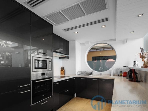 Для тех, кто любит готовить, кухня виллы, оборудованная по последнему слову техники, является воплощением мечты. Высококачественная бытовая техника, много свободного пространства, все необходимые инструменты и посуда – вам понравится проводить время в этом помещении.