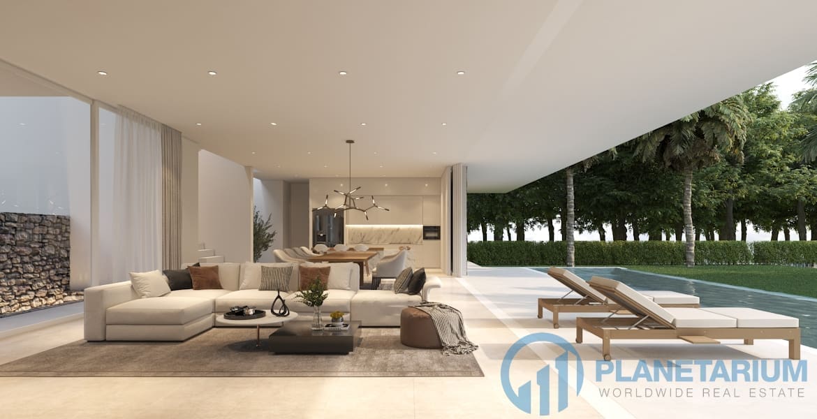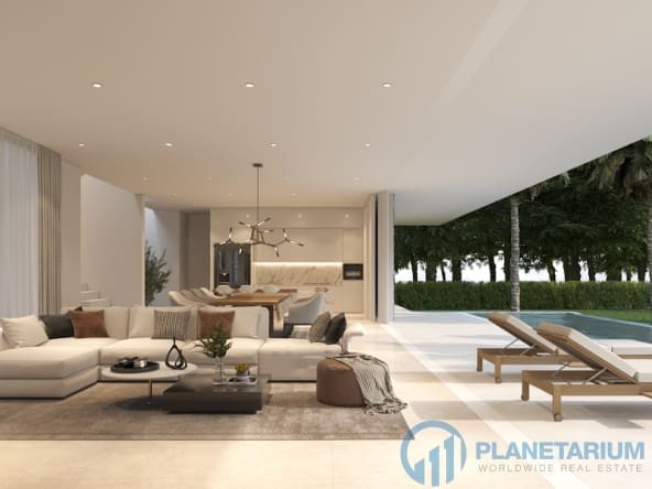 Характеристика: Роскошная вилла в районе Лагуна, планировка этажа 3-5 спален, главная ванная комната с ванной и отдельной душевой кабиной, гостиная и столовая открытого плана, полностью оборудованная западная кухня, частный бассейн, терраса у бассейна, гостевая ванная комната, зона для стирки, кладовая, сад Крытая парковка на 2 машины