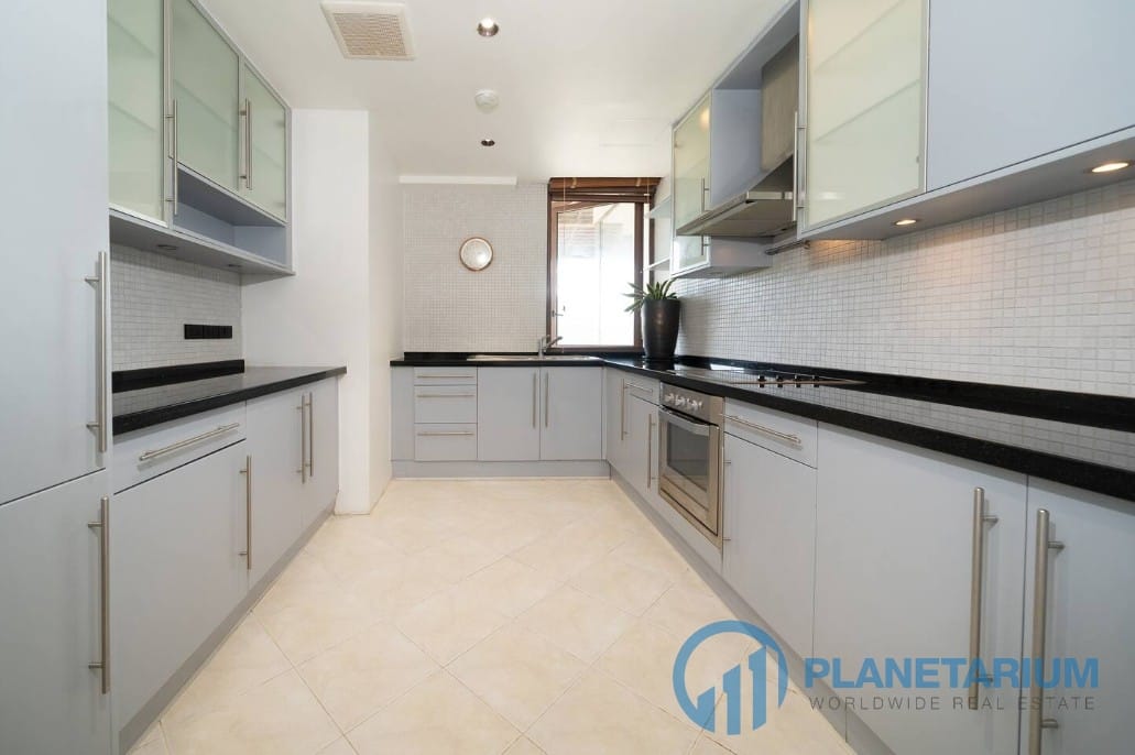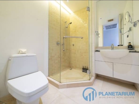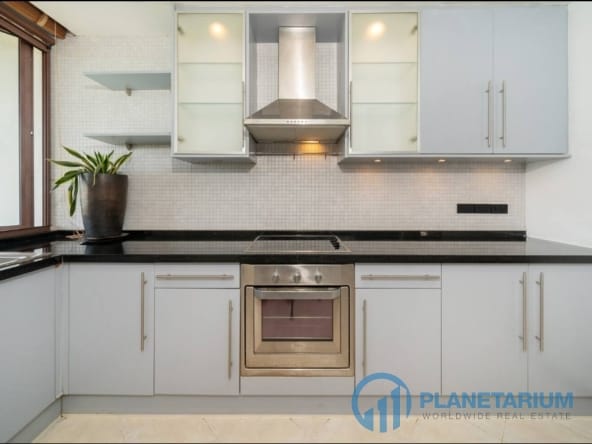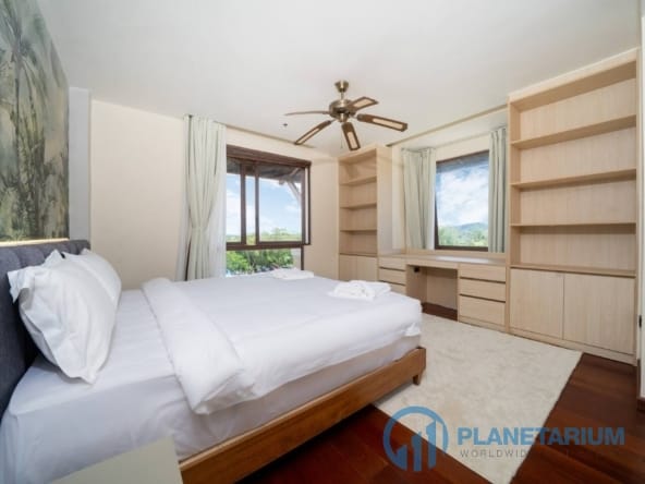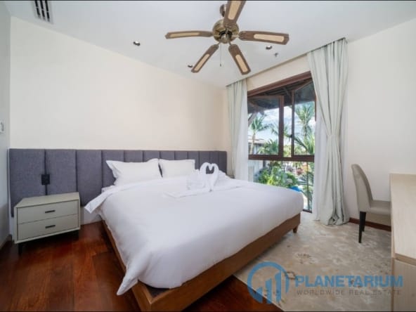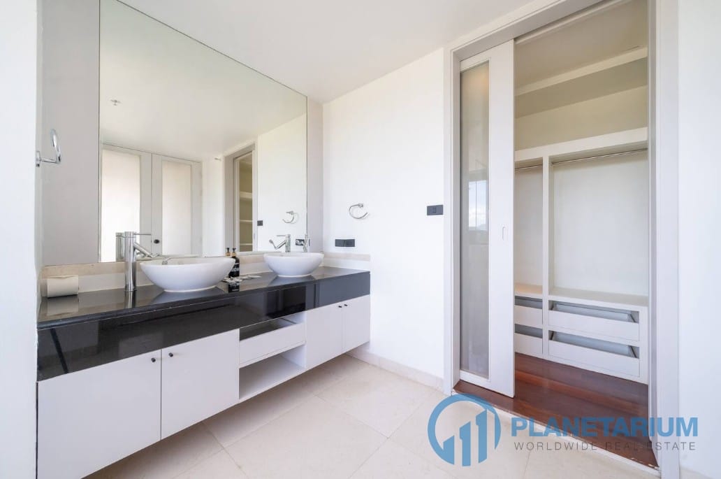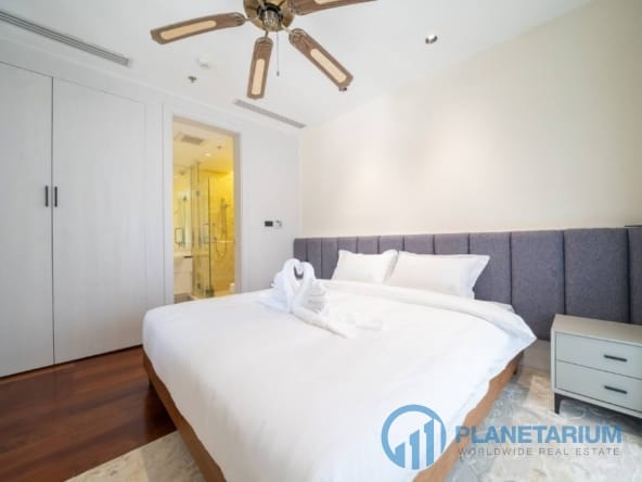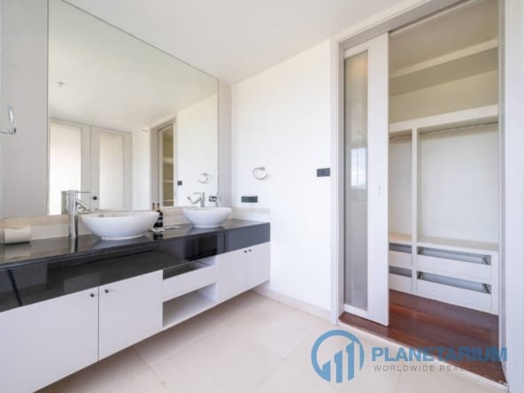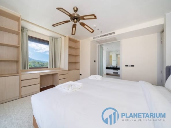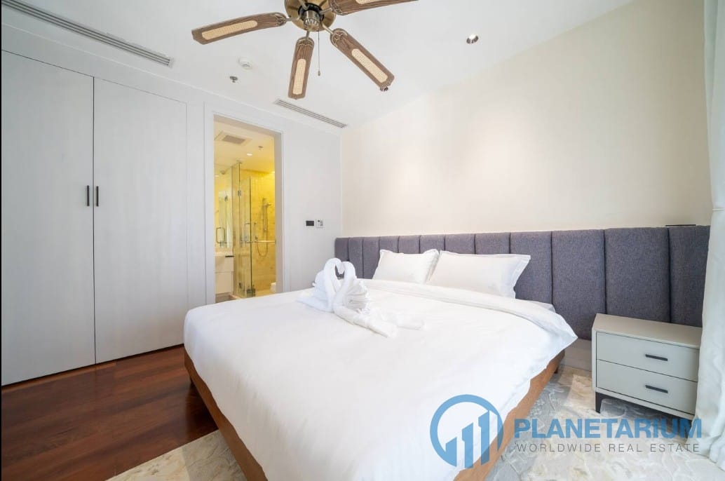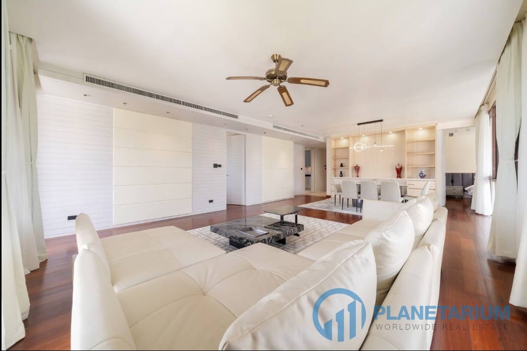 Сердцем пентхауса является приглашающая гостиная и столовая, украшенная эксклюзивной отделкой в теплых бежевых тонах, плавно переходящая в современную европейскую кухню. Каждая спальня излучает характер и тепло, с дизайном, напоминающим каюты роскошных яхт, сочетая светлое дерево и тропические виды для создания поистине уникальной атмосферы.