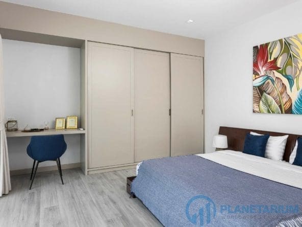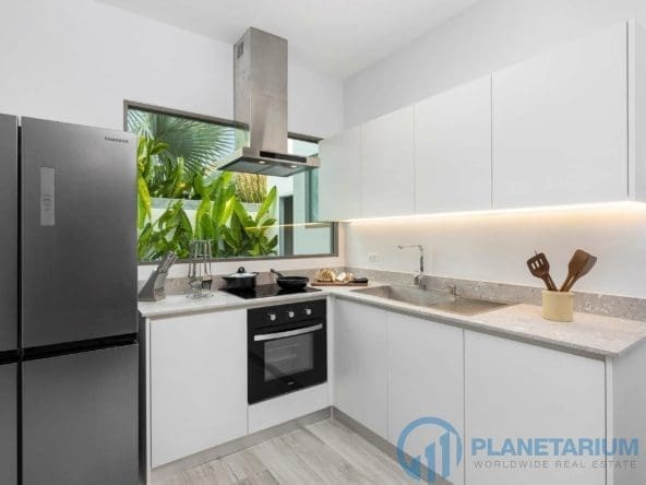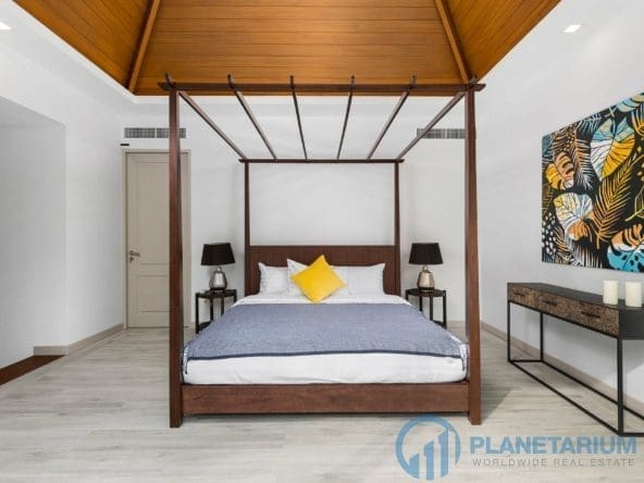 Вилла вдохновлена простым желанием устранить все лишнее, добиваясь естественного порядка, спокойствия и умиротворения. Несколько магических элементов помогут вам жить в гармонии с тропической средой. Щедрые окна и обилие стекла позволят вам испытать удовольствие от единения с тропическим окружением. Красивый бассейн соединяет павильоны, отражая свой свет на просторной террасе для загара и в интерьерах. Идеальный сад, независимо от его размеров, демонстрирует экзотические растения и листву, сохраняющуюся в течение всего года. Виллы были спроектированы и построены таким образом, чтобы обеспечить необычайно красивый внешний вид. Просторный и элегантно оформленный бассейн, отделанный традиционной андаманской темно-синей керамической плиткой, с подводной подсветкой, создающей элегантную и романтическую атмосферу в вечернее время, является центром внимания. Все виллы оснащены исключительными стандартными функциями, такими как сводчатый потолок, облицованный тиковым деревом, а также полы из массива дерева Tabek в главной спальне, роскошная полумягкая ванна в ванной комнате и бассейн с бесконечным краем. Гостиная, столовая, вторая спальня и проходная оформлены простой, но чистой керамической плиткой с возможностью отделки деревом Tabek. Натуральная пескомойка на террасах и в зоне парковки прекрасно завершает дизайн, дополняя контраст между натуральным деревом и текущей водой.