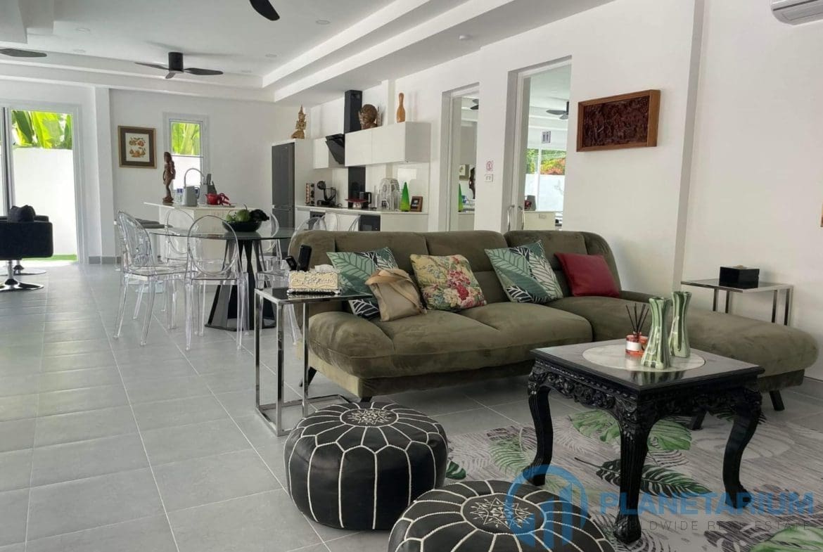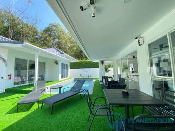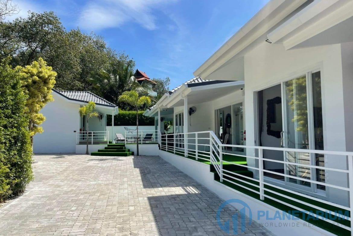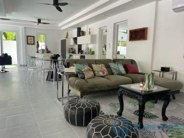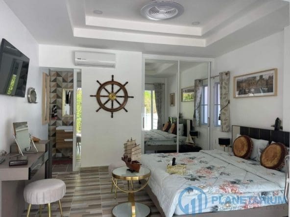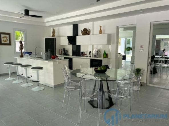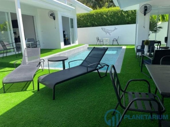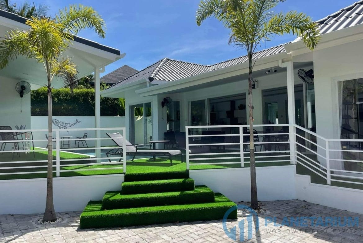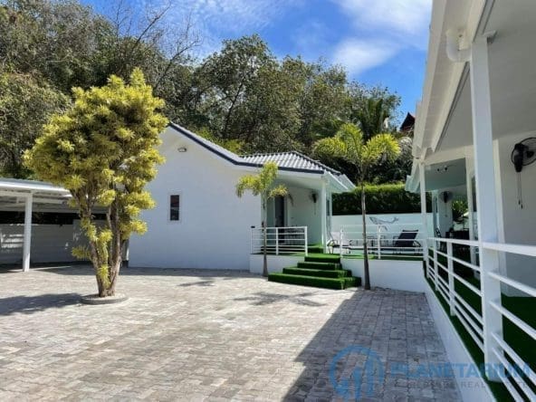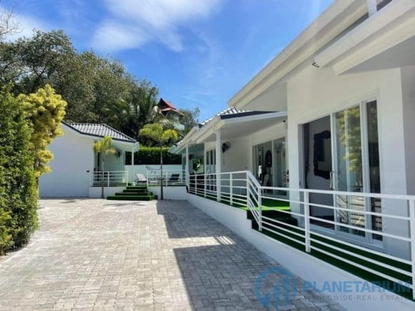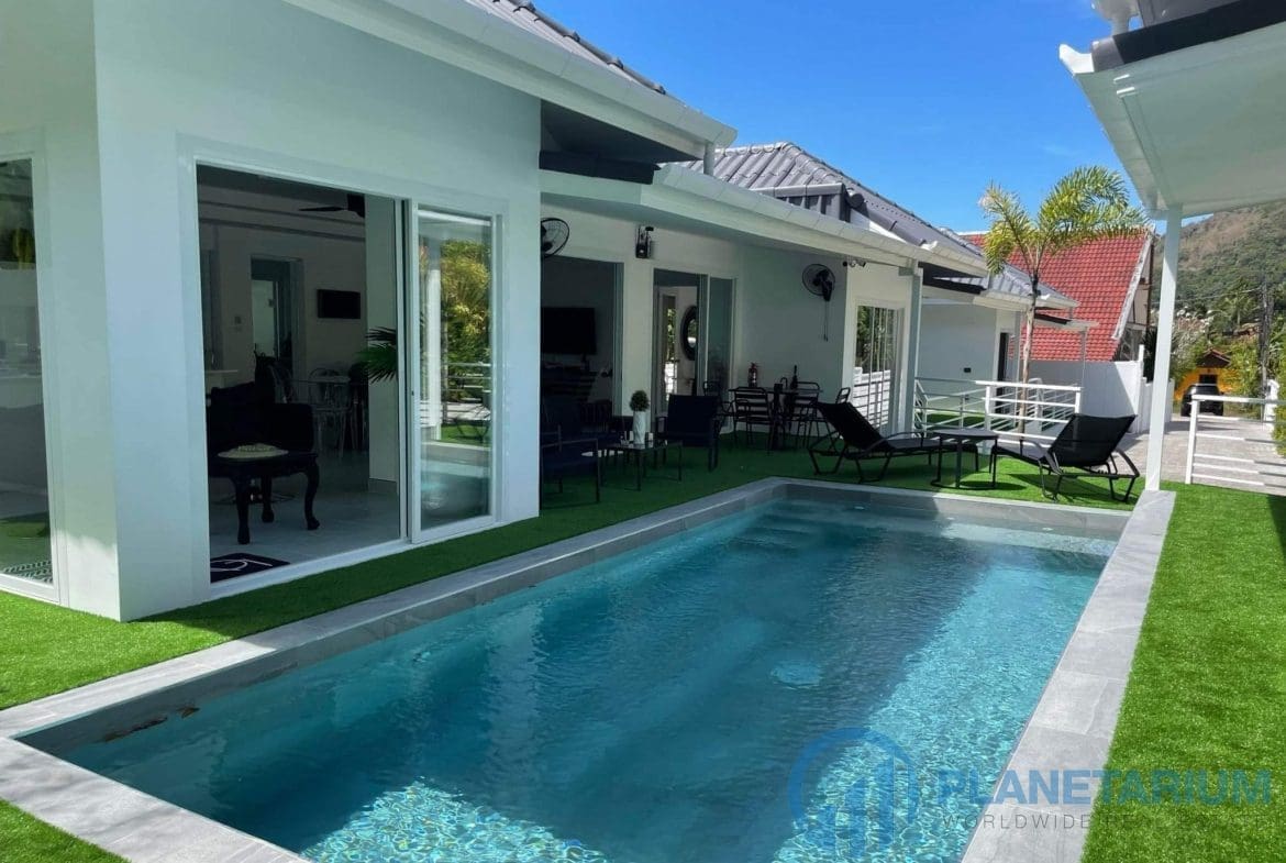 долгосрочная аренда 160.000 тыс. фунтов в месяц на один год контакт Уникальная вилла с бассейном с 5 спальнями, ванными комнатами и гостевым туалетом, полностью отремонтированная Площадь участка 764 кв. м. (Свободная собственность на Чаноте) жилая площадь 350 кв.м. Вилла расположена в очень тихом, безопасном и уединенном месте в окружении природы. Всего в 5 минутах езды от прекрасных пляжей Раваи, Найхарн, Януи. И всего в 10 минутах езды от самой красивой точки обзора заката Promthep. До ресторанов, супермаркетов и местных рынков рукой подать. Вилла расположена в современном здании, очень просторном и уникально оформленном. Дизайн дополняют хорошо подобранные светильники и фурнитура. Гостиная открытого плана с кухней в западном стиле, полностью оборудованной бытовой техникой (электрическая плита, вытяжка, духовка, микроволновая печь, холодильник, посудомоечная машина, гриль для барбекю) Каждая комната независима и включает в себя ванную комнату, террасу и укомплектована удобным оборудованием, телевизором, кондиционером, потолочным вентилятором. Частный гараж с местом для автомобилей и мотоциклов, кладовая, стиральная машина, сушилка для белья – Бассейн с солевой системой – Колодец – Вода – Видеонаблюдение – WiFi Аренда включена – Уборка дома 2 раза в неделю для уборки виллы, смена белья и полотенец. * Не включает уборку посуды и стирку белья для клиента. – Смена белья и полотенец 1 раз/неделю – Уход за садом и бассейном 2 раза/неделю. – Wi Fi В стоимость аренды не входит – Электричество: Государственный счет ( Максимум 10 гостей (включая детей) – Домашние животные не допускаются, – Вечеринки не проводятся