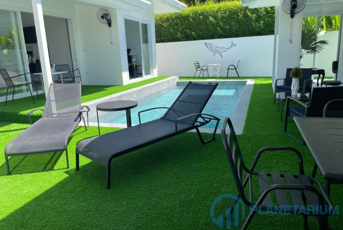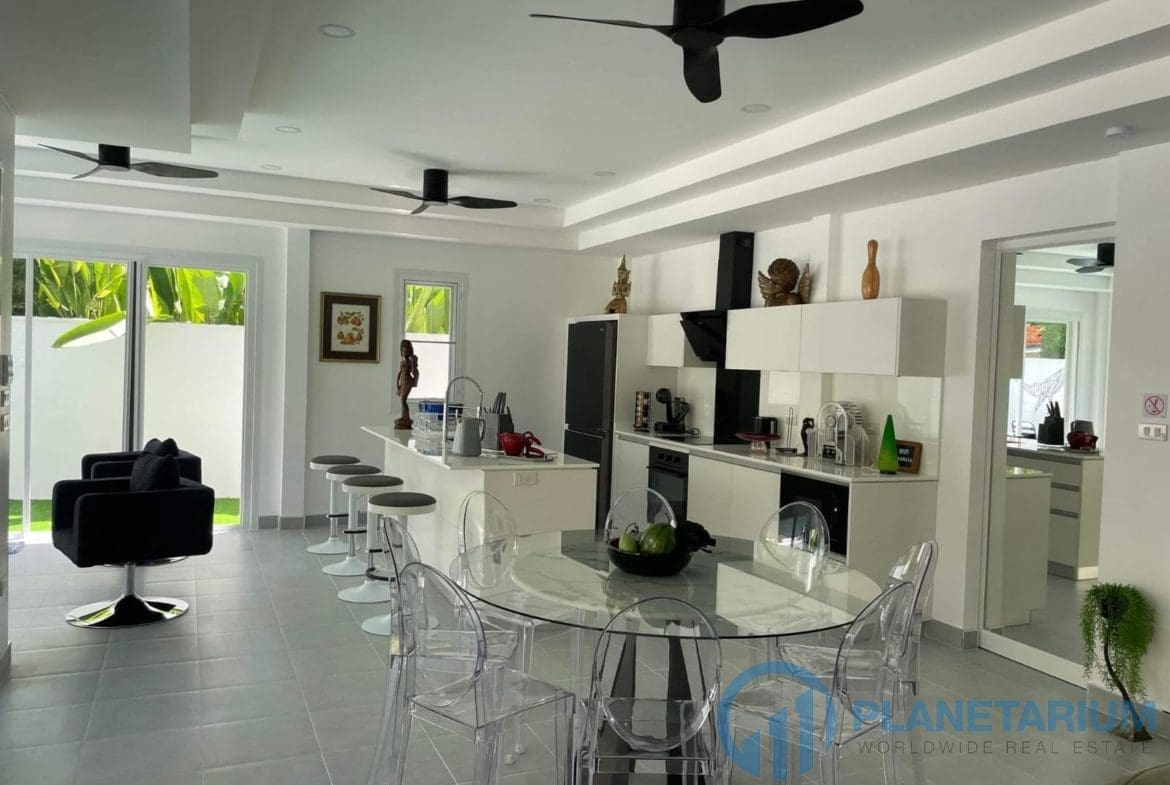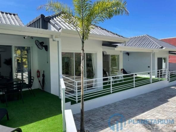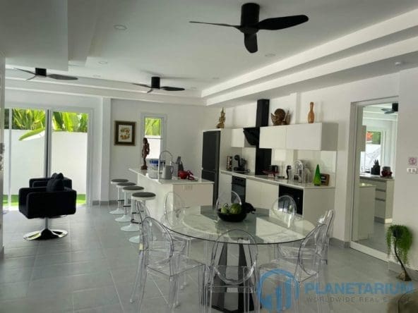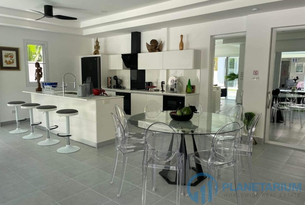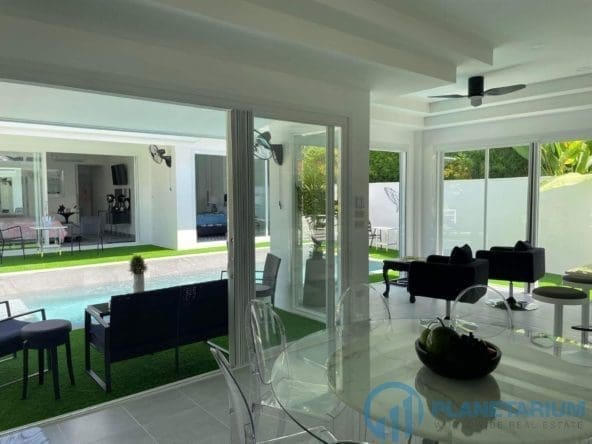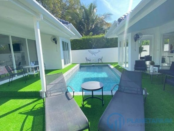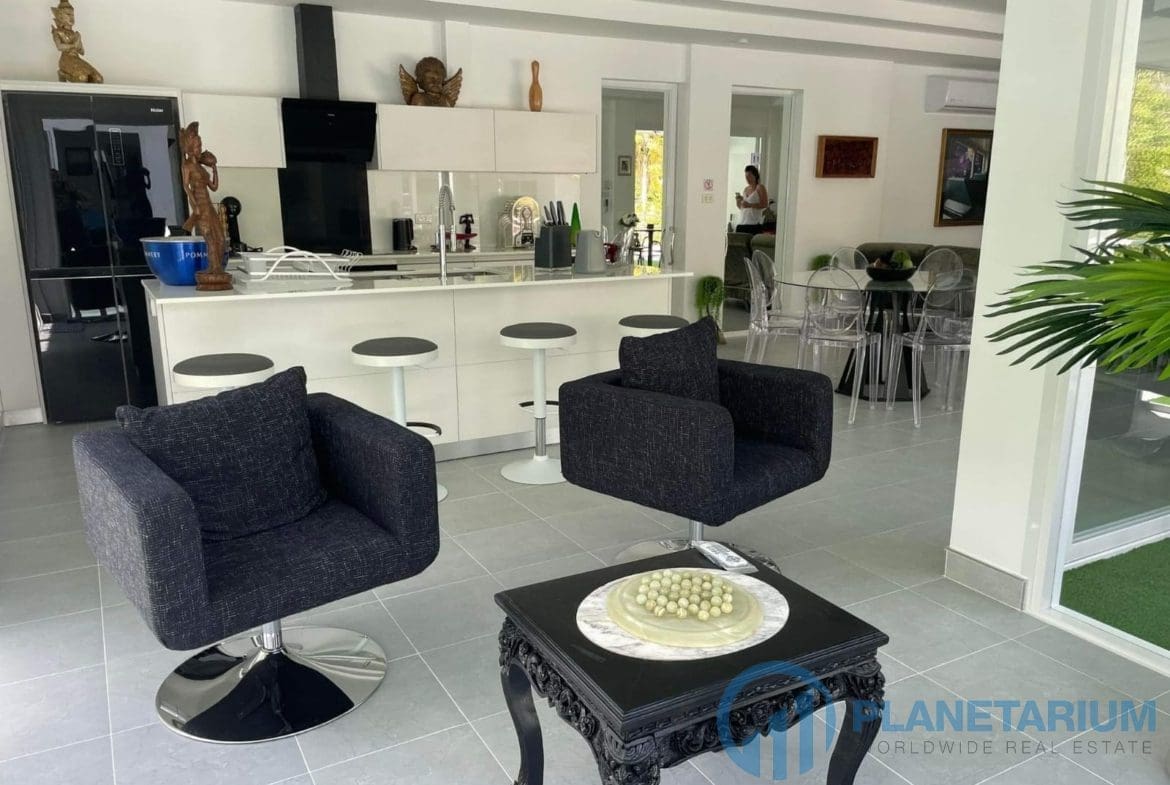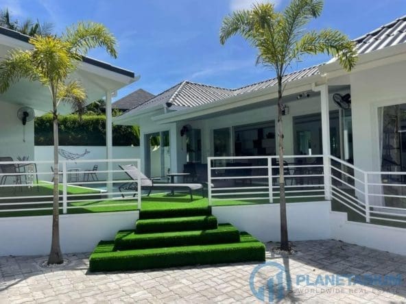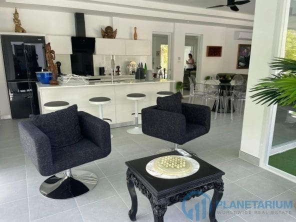 долгосрочная аренда 160.000 тыс. фунтов в месяц на один год контакт Уникальная вилла с бассейном с 5 спальнями, ванными комнатами и гостевым туалетом, полностью отремонтированная Площадь участка 764 кв. м. (Свободная собственность на Чаноте) жилая площадь 350 кв.м. Вилла расположена в очень тихом, безопасном и уединенном месте в окружении природы. Всего в 5 минутах езды от прекрасных пляжей Раваи, Найхарн, Януи. И всего в 10 минутах езды от самой красивой точки обзора заката Promthep. До ресторанов, супермаркетов и местных рынков рукой подать. Вилла расположена в современном здании, очень просторном и уникально оформленном. Дизайн дополняют хорошо подобранные светильники и фурнитура. Гостиная открытого плана с кухней в западном стиле, полностью оборудованной бытовой техникой (электрическая плита, вытяжка, духовка, микроволновая печь, холодильник, посудомоечная машина, гриль для барбекю) Каждая комната независима и включает в себя ванную комнату, террасу и укомплектована удобным оборудованием, телевизором, кондиционером, потолочным вентилятором. Частный гараж с местом для автомобилей и мотоциклов, кладовая, стиральная машина, сушилка для белья – Бассейн с солевой системой – Колодец – Вода – Видеонаблюдение – WiFi Аренда включена – Уборка дома 2 раза в неделю для уборки виллы, смена белья и полотенец. * Не включает уборку посуды и стирку белья для клиента. – Смена белья и полотенец 1 раз/неделю – Уход за садом и бассейном 2 раза/неделю. – Wi Fi В стоимость аренды не входит – Электричество: Государственный счет ( Максимум 10 гостей (включая детей) – Домашние животные не допускаются, – Вечеринки не проводятся