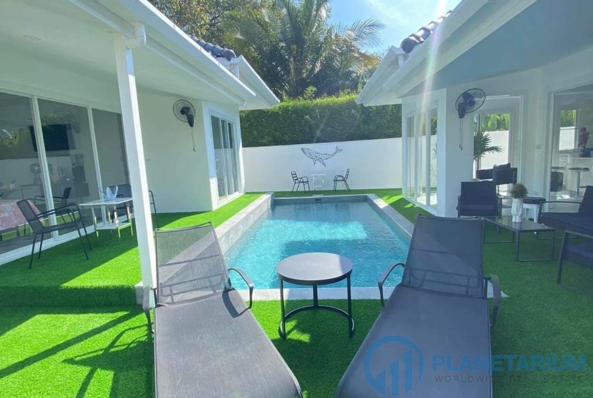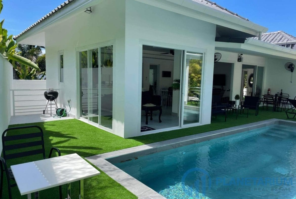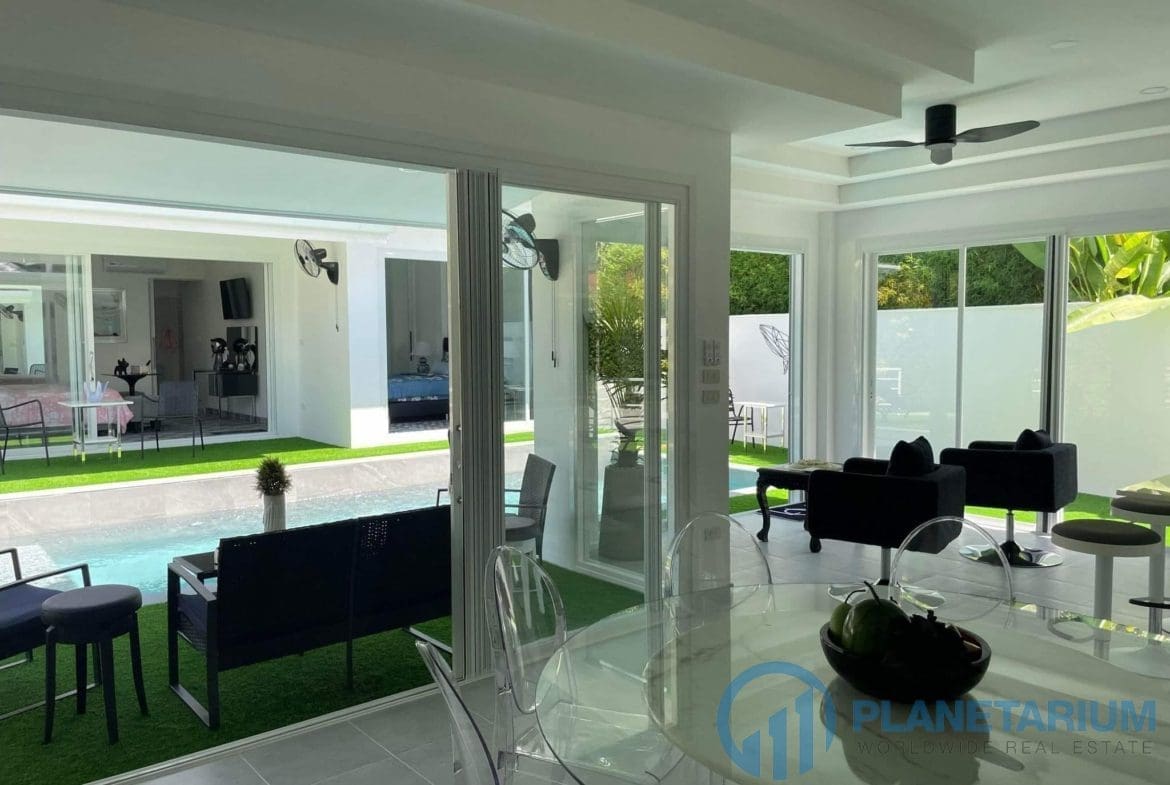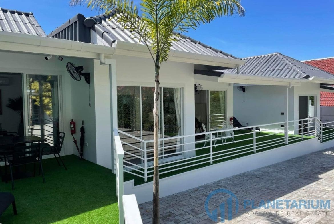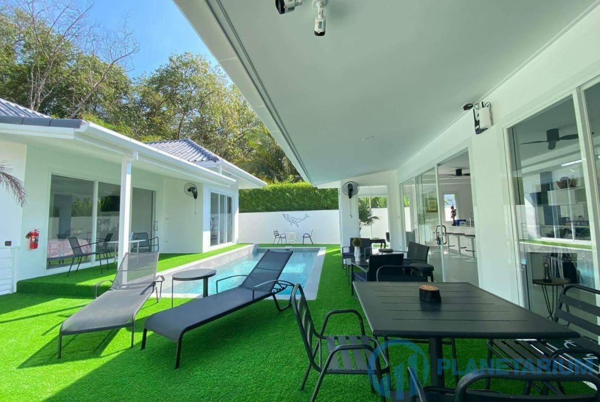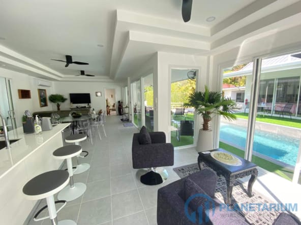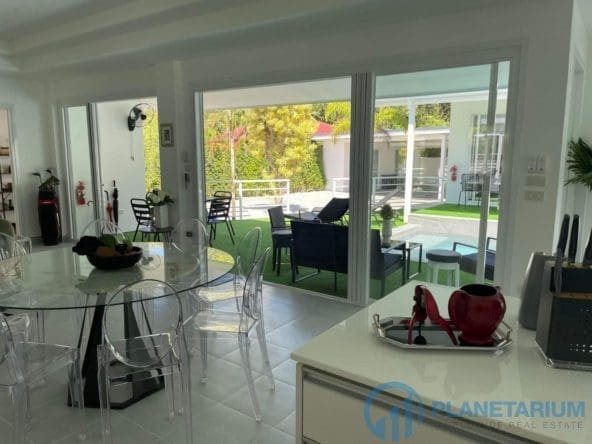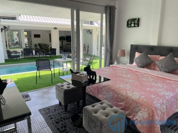 долгосрочная аренда 160.000 тыс. фунтов в месяц на один год контакт Уникальная вилла с бассейном с 5 спальнями, ванными комнатами и гостевым туалетом, полностью отремонтированная Площадь участка 764 кв. м. (Свободная собственность на Чаноте) жилая площадь 350 кв.м. Вилла расположена в очень тихом, безопасном и уединенном месте в окружении природы. Всего в 5 минутах езды от прекрасных пляжей Раваи, Найхарн, Януи. И всего в 10 минутах езды от самой красивой точки обзора заката Promthep. До ресторанов, супермаркетов и местных рынков рукой подать. Вилла расположена в современном здании, очень просторном и уникально оформленном. Дизайн дополняют хорошо подобранные светильники и фурнитура. Гостиная открытого плана с кухней в западном стиле, полностью оборудованной бытовой техникой (электрическая плита, вытяжка, духовка, микроволновая печь, холодильник, посудомоечная машина, гриль для барбекю) Каждая комната независима и включает в себя ванную комнату, террасу и укомплектована удобным оборудованием, телевизором, кондиционером, потолочным вентилятором. Частный гараж с местом для автомобилей и мотоциклов, кладовая, стиральная машина, сушилка для белья – Бассейн с солевой системой – Колодец – Вода – Видеонаблюдение – WiFi Аренда включена – Уборка дома 2 раза в неделю для уборки виллы, смена белья и полотенец. * Не включает уборку посуды и стирку белья для клиента. – Смена белья и полотенец 1 раз/неделю – Уход за садом и бассейном 2 раза/неделю. – Wi Fi В стоимость аренды не входит – Электричество: Государственный счет ( Максимум 10 гостей (включая детей) – Домашние животные не допускаются, – Вечеринки не проводятся