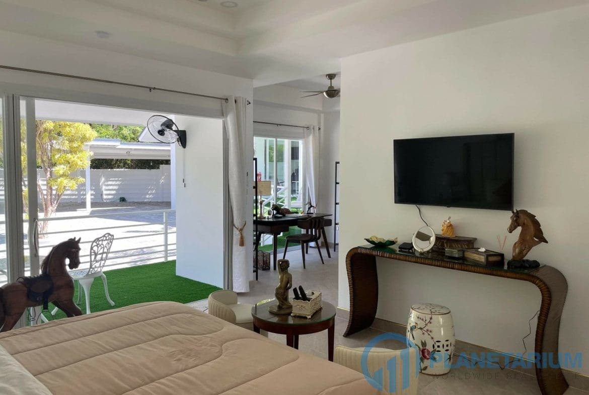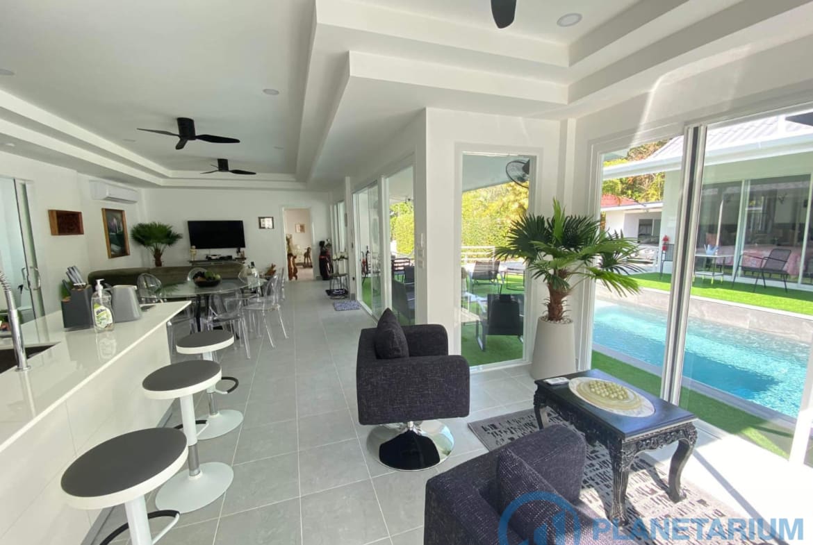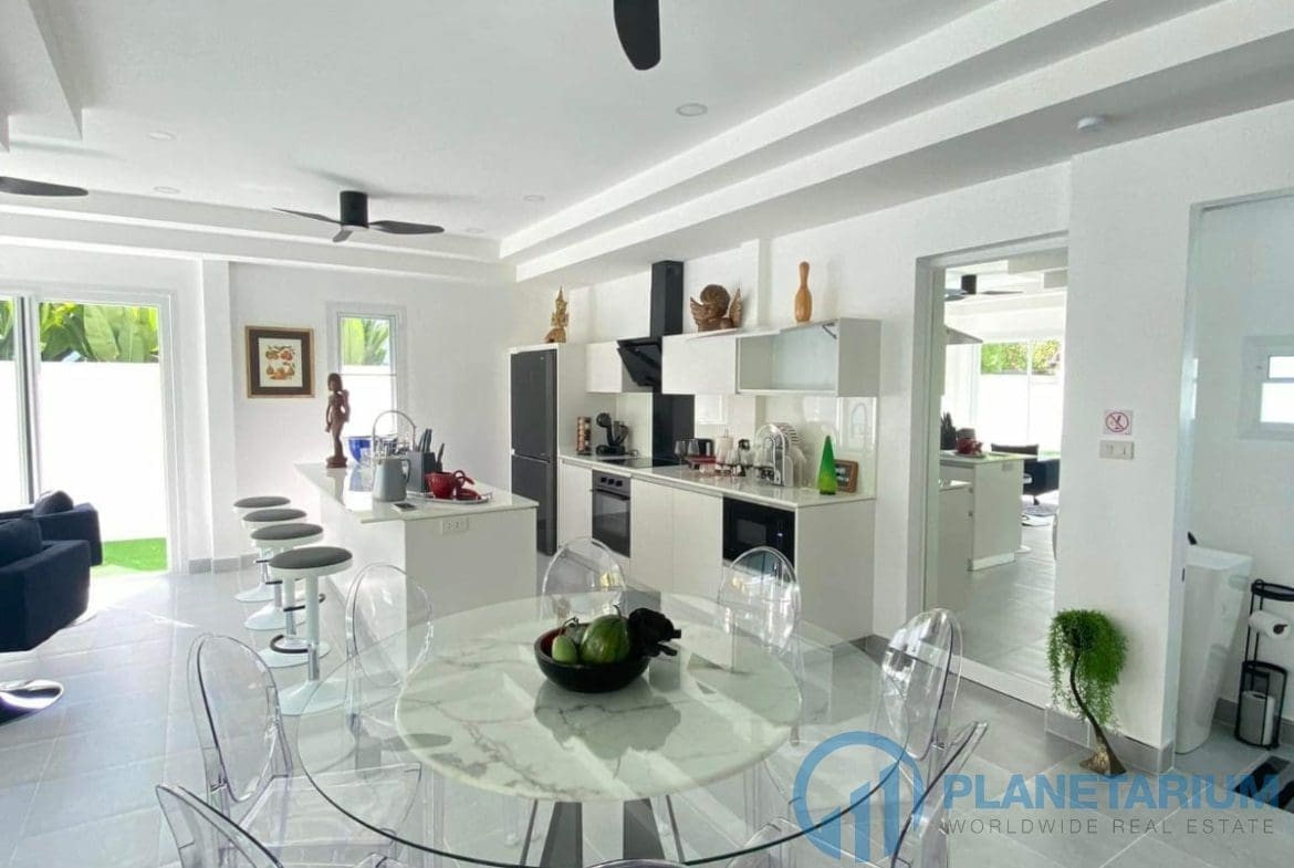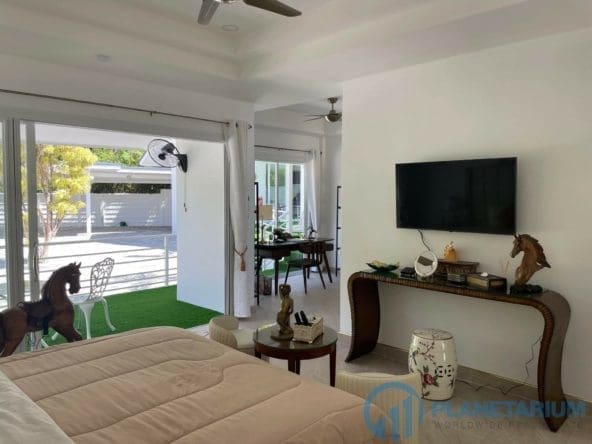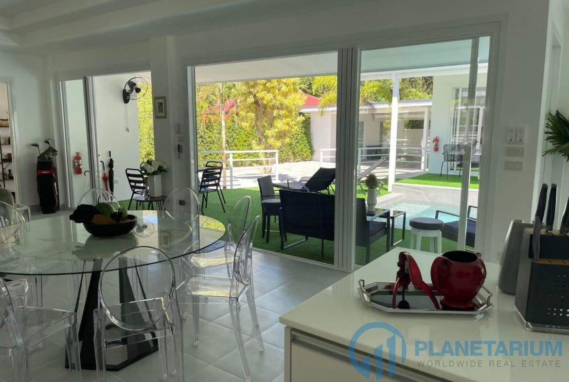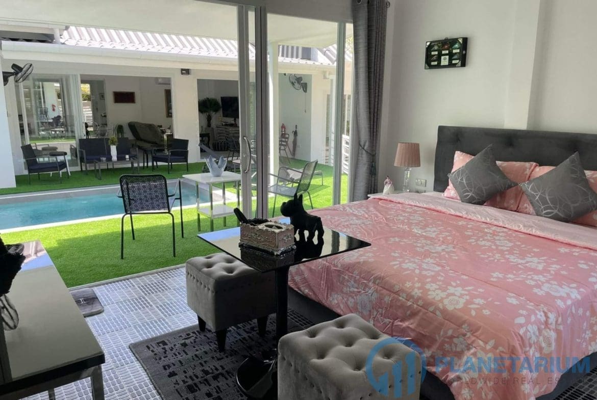 долгосрочная аренда 160.000 тыс. фунтов в месяц на один год контакт Уникальная вилла с бассейном с 5 спальнями, ванными комнатами и гостевым туалетом, полностью отремонтированная Площадь участка 764 кв. м. (Свободная собственность на Чаноте) жилая площадь 350 кв.м. Вилла расположена в очень тихом, безопасном и уединенном месте в окружении природы. Всего в 5 минутах езды от прекрасных пляжей Раваи, Найхарн, Януи. И всего в 10 минутах езды от самой красивой точки обзора заката Promthep. До ресторанов, супермаркетов и местных рынков рукой подать. Вилла расположена в современном здании, очень просторном и уникально оформленном. Дизайн дополняют хорошо подобранные светильники и фурнитура. Гостиная открытого плана с кухней в западном стиле, полностью оборудованной бытовой техникой (электрическая плита, вытяжка, духовка, микроволновая печь, холодильник, посудомоечная машина, гриль для барбекю) Каждая комната независима и включает в себя ванную комнату, террасу и укомплектована удобным оборудованием, телевизором, кондиционером, потолочным вентилятором. Частный гараж с местом для автомобилей и мотоциклов, кладовая, стиральная машина, сушилка для белья – Бассейн с солевой системой – Колодец – Вода – Видеонаблюдение – WiFi Аренда включена – Уборка дома 2 раза в неделю для уборки виллы, смена белья и полотенец. * Не включает уборку посуды и стирку белья для клиента. – Смена белья и полотенец 1 раз/неделю – Уход за садом и бассейном 2 раза/неделю. – Wi Fi В стоимость аренды не входит – Электричество: Государственный счет ( Максимум 10 гостей (включая детей) – Домашние животные не допускаются, – Вечеринки не проводятся
