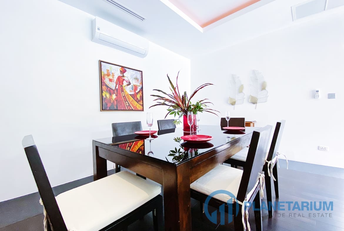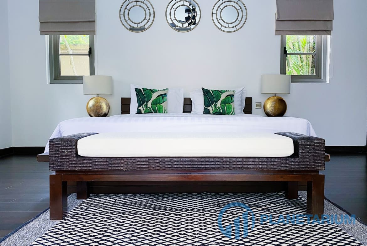 - Главная спальня: с кроватью размера «king-size», встроенным шкафом, туалетным столиком с зеркалом и ванной комнатой с джакузи, душем и туалетом. Главная спальня имеет отдельный вход для дополнительной конфиденциальности.