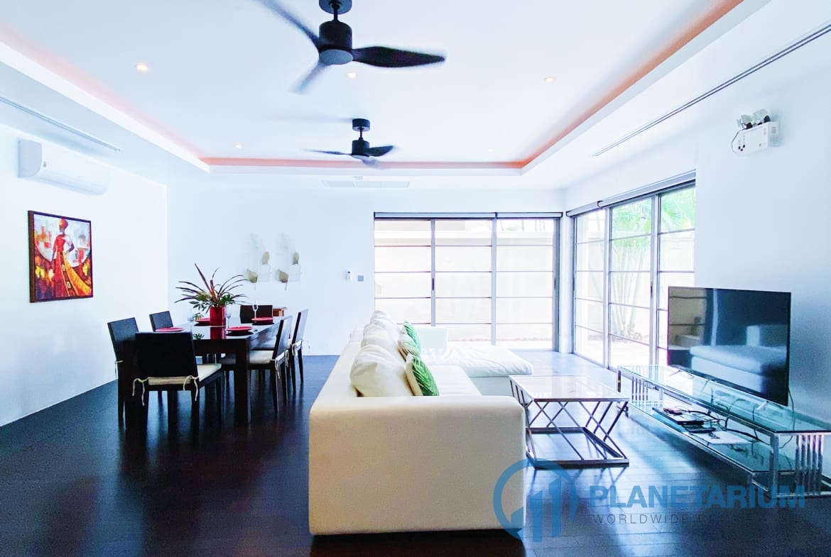 Вилла располагает просторной гостиной и обеденной зоной открытой планировки, обставленной удобным диваном, телевизором с плоским экраном и спутниковыми каналами, DVD-плеером и бесплатным Wi-Fi.