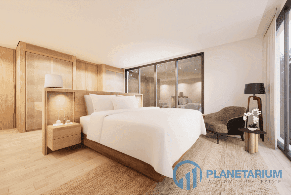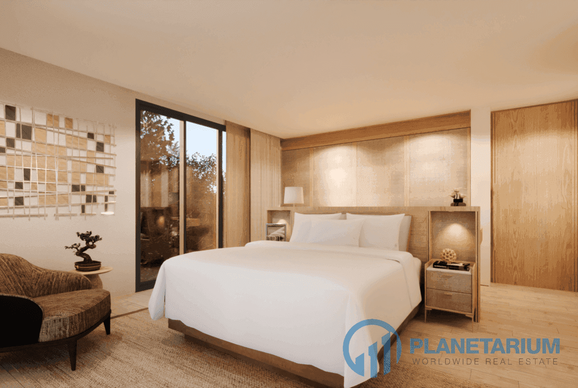 Частный оазис с бассейном: Каждая вилла включает в себя частный бассейн, окруженный пышной зеленью, и стильный павильон у бассейна с открытой площадкой для отдыха и обеденной зоной, идеально подходящий для отдыха, развлечений и полного погружения в тропический образ жизни.