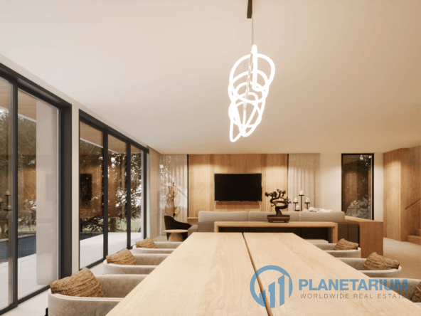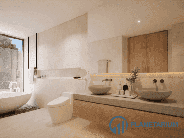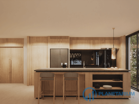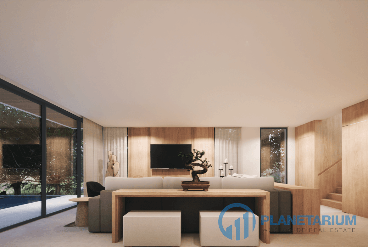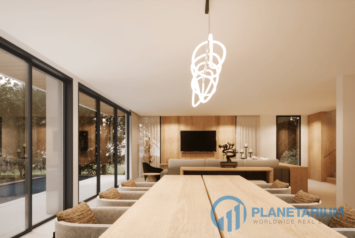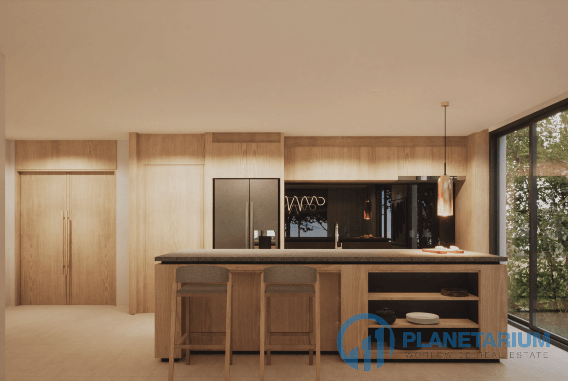 🌞 Пространства для жизни в помещении и на открытом воздухе Виллы отличаются просторными и светлыми интерьерами, которые дополняются стеклянными окнами от пола до потолка, выходящими на потрясающую открытую террасу с бассейном. Такая открытая планировка способствует беспрепятственной связи с природой, создавая спокойную и привлекательную атмосферу.