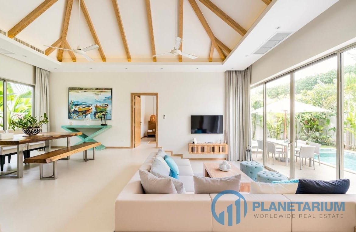 Эти виллы сочетают в себе современный комфорт и тропический дизайн, предлагая идеальное пространство для роскошной и спокойной жизни.