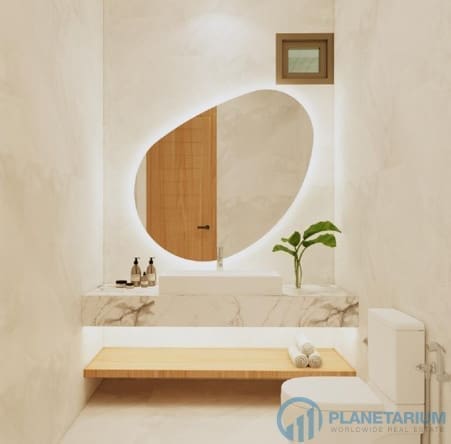 🏡 Современная эстетика внутри и снаружи 🏡 Внешний дизайн отличается ультрасовременной эстетикой, характеризующейся закругленными углами, которые придают архитектуре особый характер. Интерьер, выполненный в этом стиле, отличается шикарным дизайном и со вкусом подобранными украшениями.